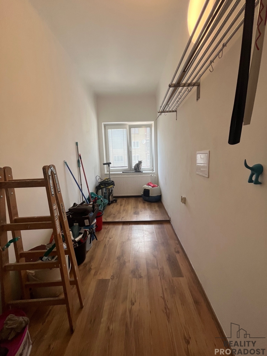 Byt disponuje dostatkem úložných prostor a díky své velikosti 100 m² nabízí komfortní bydlení i pro rozvětvenou rodinu.
