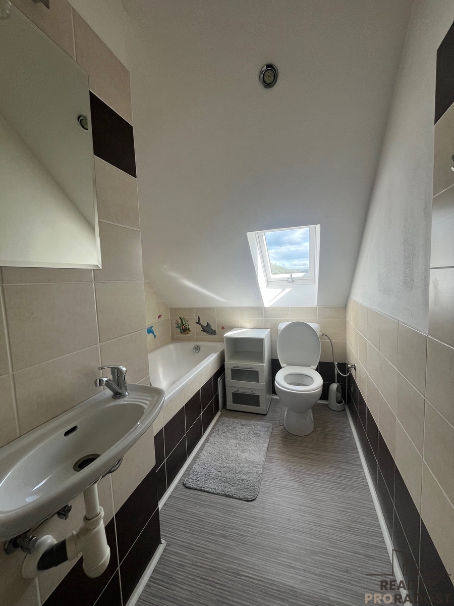 V horním patře bytu jsou umístěny další dva pokoje, které nabízejí dostatek prostoru pro celou rodinu a další koupelna a WC. Tyto místnosti lze využít jako ložnice, dětské pokoje nebo pracovny podle aktuálních potřeb. Mezonetové řešení zajišťuje dokonalé oddělení denní a noční zóny, což přispívá k pohodlnému bydlení.
