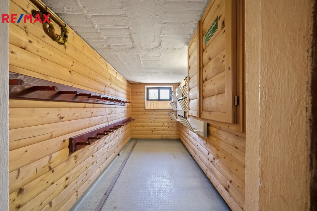 Další prostory představuje první podzemní podlaží, jelikož je dům cca z jedné poloviny podsklepen. V 1. PP se nachází lyžárna, kotelna, sklad a technické zázemí.