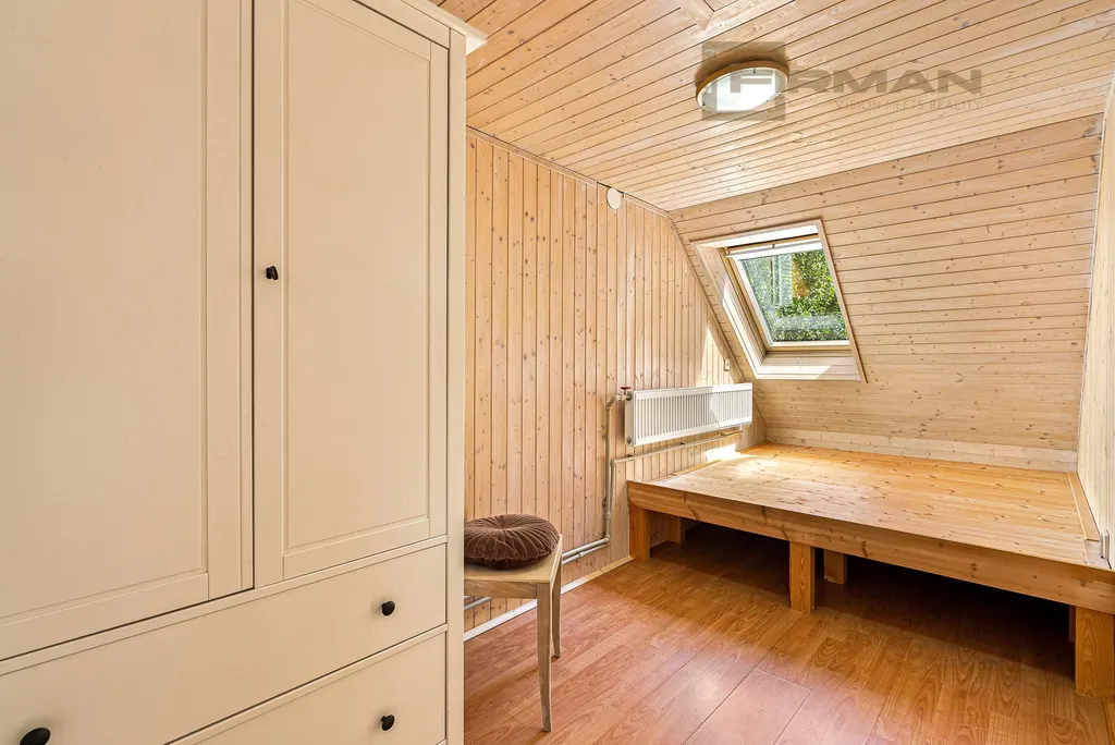 V přízemí se nachází kuchyně, útulný obývací pokoj s krbem, ložnice, koupelna, samostatné WC a vstup do sklepa. Horní patro nabízí jeden samostatný pokoj a dva průchozí, z nichž jeden byl využíván jako horní kuchyňka, ale lze jej jednoduše upravit zpět na plnohodnotný pokoj, ložnici či pracovnu. Celý dům je podsklepený suchými a světlými prostory s okny, ideálními pro skladování i hobby zázemí. Pro Vaše kola či čtyřkolky je připravena garáž i přístřešek pro další vozidlo, v ulici jsou k dispozici 2 parkovací místa.