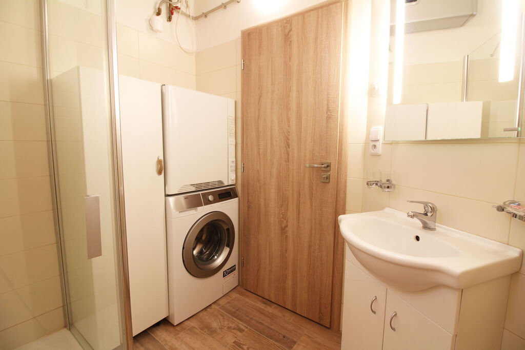 Byt se nabízí plně vybavený. Součástí kuchyňské linky je lednice, mikrovlnná trouba, elektrická trouba, varná deska, digestoř a myčka. Dále se v kuchyni nachází jídelní stůl se židlemi. V pokoji se nachází nábytek dělaný na míru a manželská postel. Okna jsou orientovaná do vnitrobloku, takže zaručují klidné bydlení. Koupelna je vybavena umyvadlem se zrcadlem, sprchovým koutem, pračkou a sušičkou. Z koupelny je vstup na toaletu.