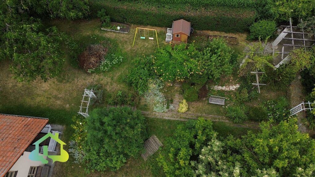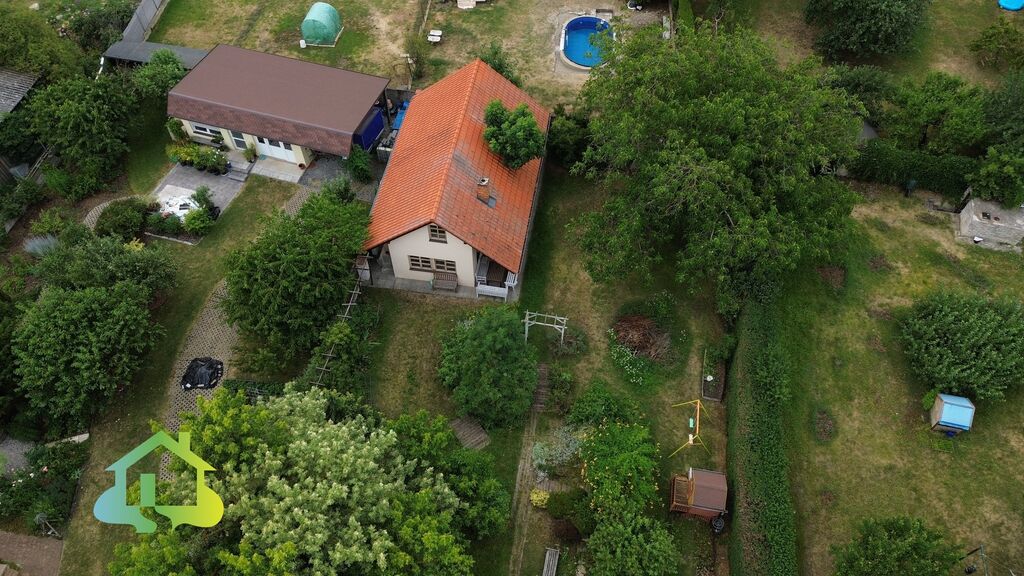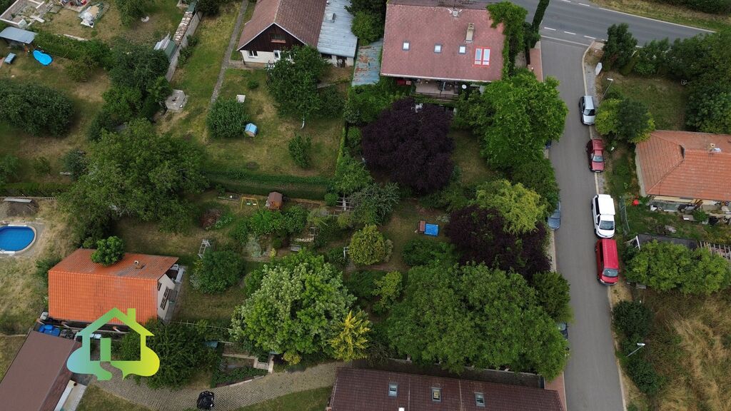 Na pozemku se vzrostlými stromy se nachází menší zděný zahradní dům o velikosti cca 50 m², který vznikl na místě stavby původního domu. Stavba je legální, ale nebyla dosud kolaudována a není proto zapsaná v KN. Objekt nabízí zázemí pro rekreační využití a nebo dočasného bydlení během výstavby jednoho či dvou RD.