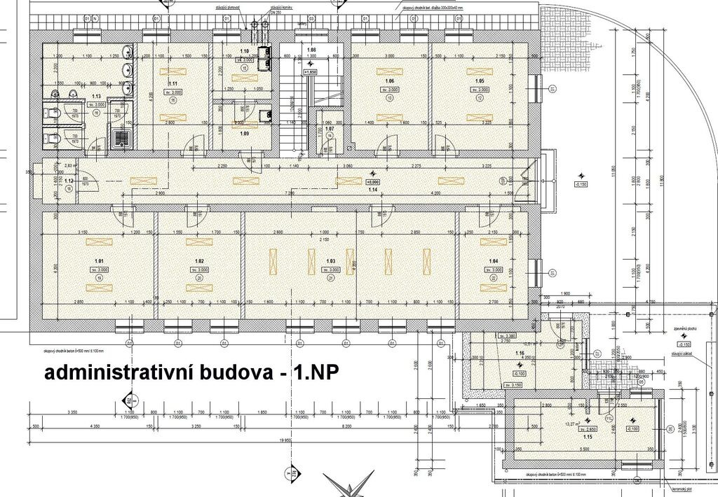Areál je napojen na elektropřípojku, veřejný vodovod, kanalizaci a plyn. V administrativní budově, kde jsou situovány kanceláře, zasedací místnost, šatny, soc. zařízení a zázemí pro zaměstnance, byla provedena rekonstrukce před 15 lety. Dvoupodlažní budova o užitné ploše 387 m2 je vytápěna ústředním topením z plynového kotle.