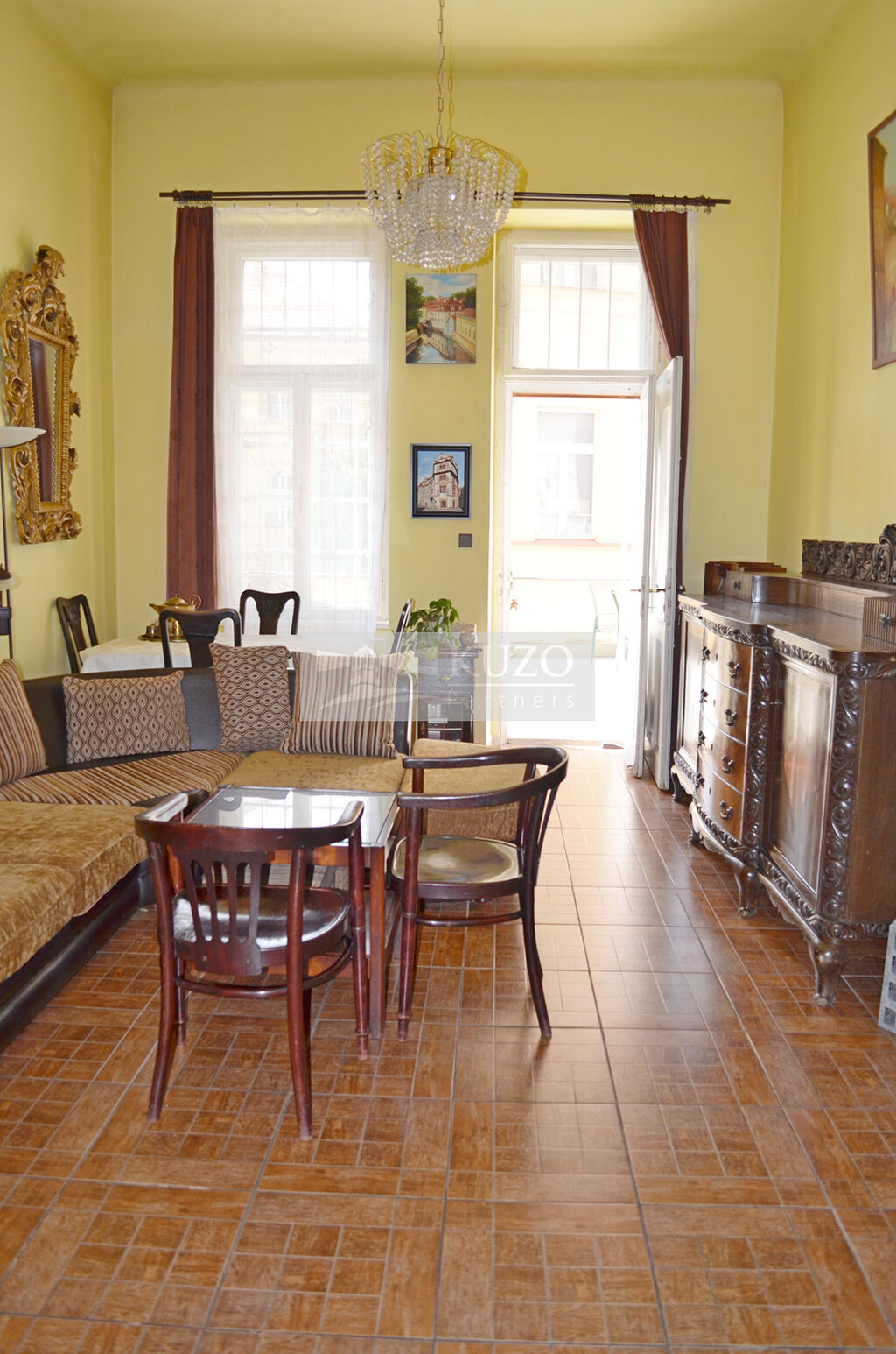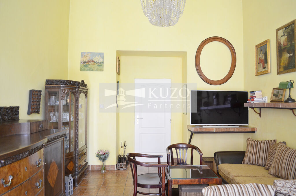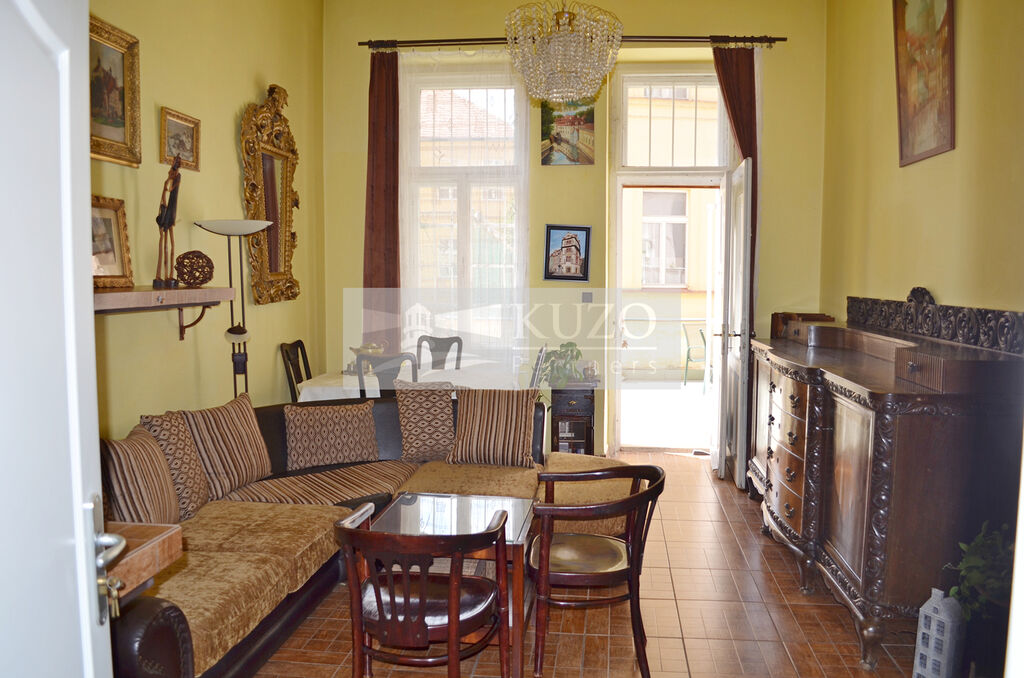 Nabízený byt se nachází ve druhém podlaží cihlového domu, který je ve velmi dobrém stavu a má celkem pět podlaží. Vysoké stropy dosahující výšky 4 metry dodávají interiéru vzdušnost a prostor, a umožňují tak výrazně využít potenciál tohoto bytu. Dispozice zahrnuje neprůchozí pokoje, které zajišťují soukromí pro všechny obyvatele.