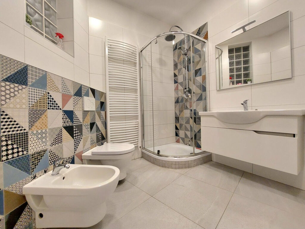 Byt se nabízí vybavený. Kuchyně disponuje lednicí, myčkou, elektrickou troubou, varnou deskou, mikrovlnnou troubou, digestoří a rychlovarnou konvicí. Obývací část je zařízena pohovkou, konferenčním stolem, TV stolkem a knihovnou. Najdeme zde i jídelní stůl s židlemi. Součástí ložnice je postel a prostorné vestavěné skříně. V koupelně je sprchový kout, umyvadlo, toaleta, bidet a pračka.
