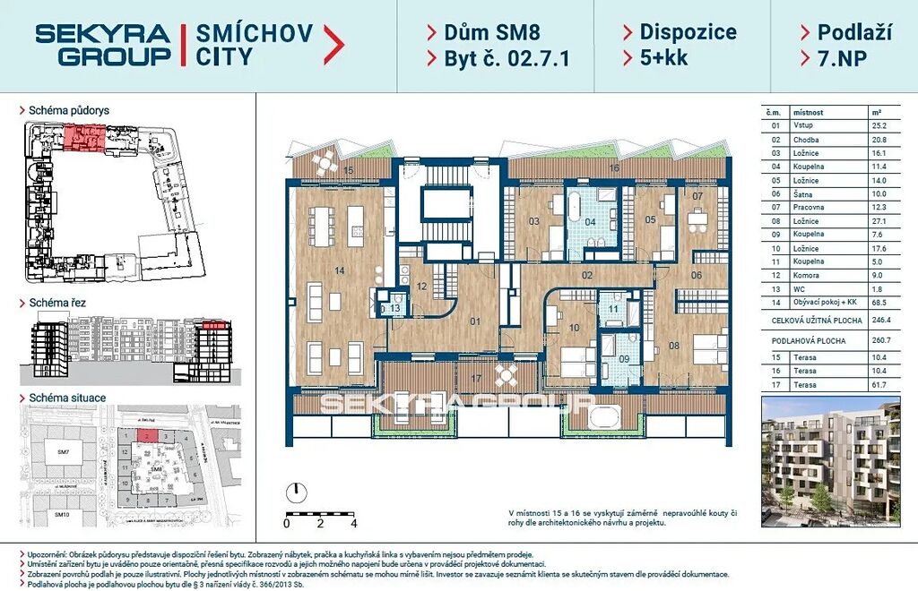 Dovolujeme si Vám nabídnout k prodeji byt 5+kk o výměře 260,7 m2 s terasou 82,5 m2 v rezidenčním projektu Smíchov City, blok SM8.