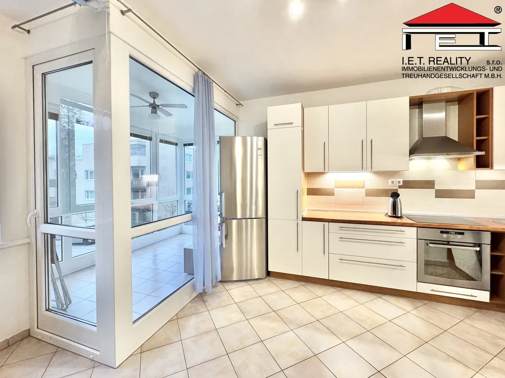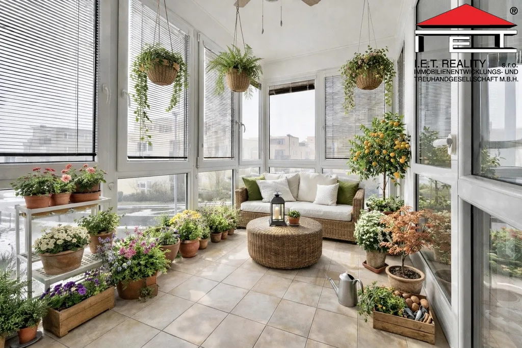 Jedním z hlavních benefitů bytu je atypická zasklená lodžie, která přirozeně rozšiřuje obytný prostor a vytváří místo pro relax, ranní kávu i večerní posezení – a to v každém ročním období.