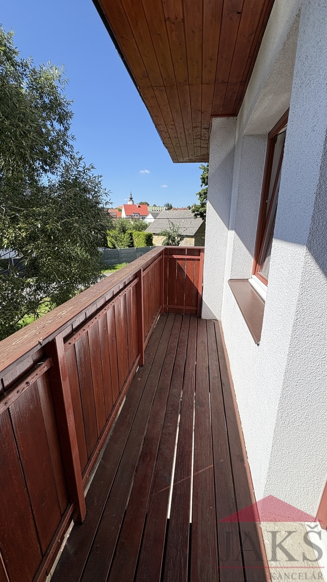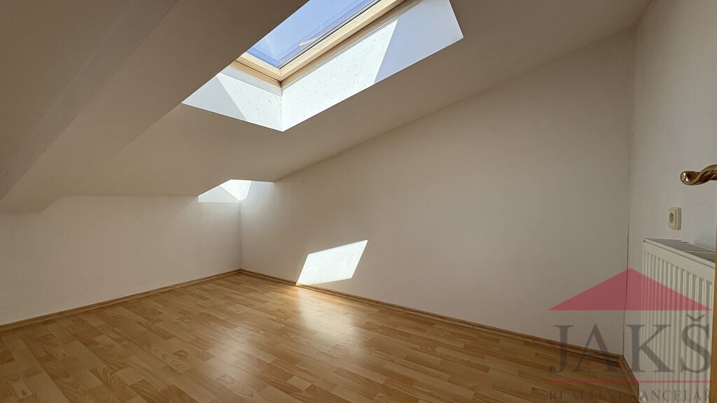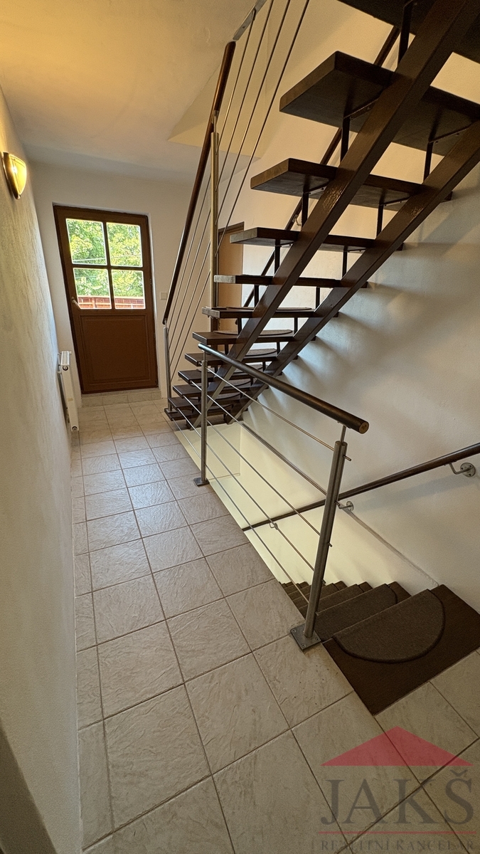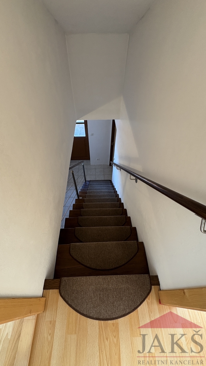 Popis: 1.NP (61,4 m2): vstupní chodba, dílna, kotelna (el. boiler a technologie k TČ), prostorný obývací pokoj se schodištěm do 2.NP, kuchyň (kuch. linka s HV troubou se sklo-ker. deskou) se vstupem na zahradu, koupelna s podlahovým topením (rohová vana, umyv. se zrcadlem, WC, topný žebřík); 2.NP (38,2 m2): chodba se schodištěm do podkroví a vstupem na velkou terasu, koupelna (umyv. se zrcadlem, topný žebřík, WC), ložnice s balkonem, ložnice; podkroví: 2x půdní prostor (bez světlé výšky, avšak jako dětský pokoj pro malé děti ideální).