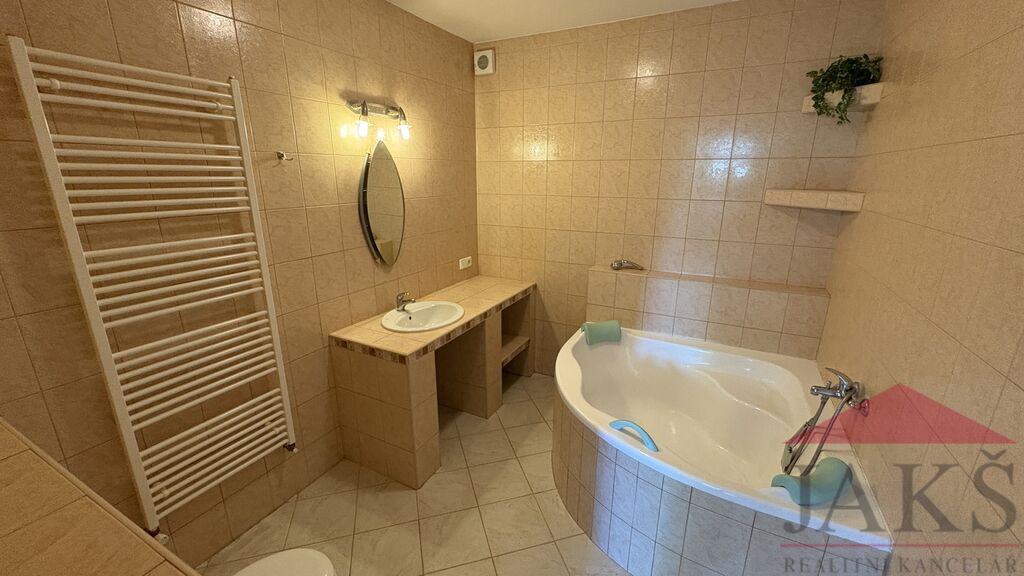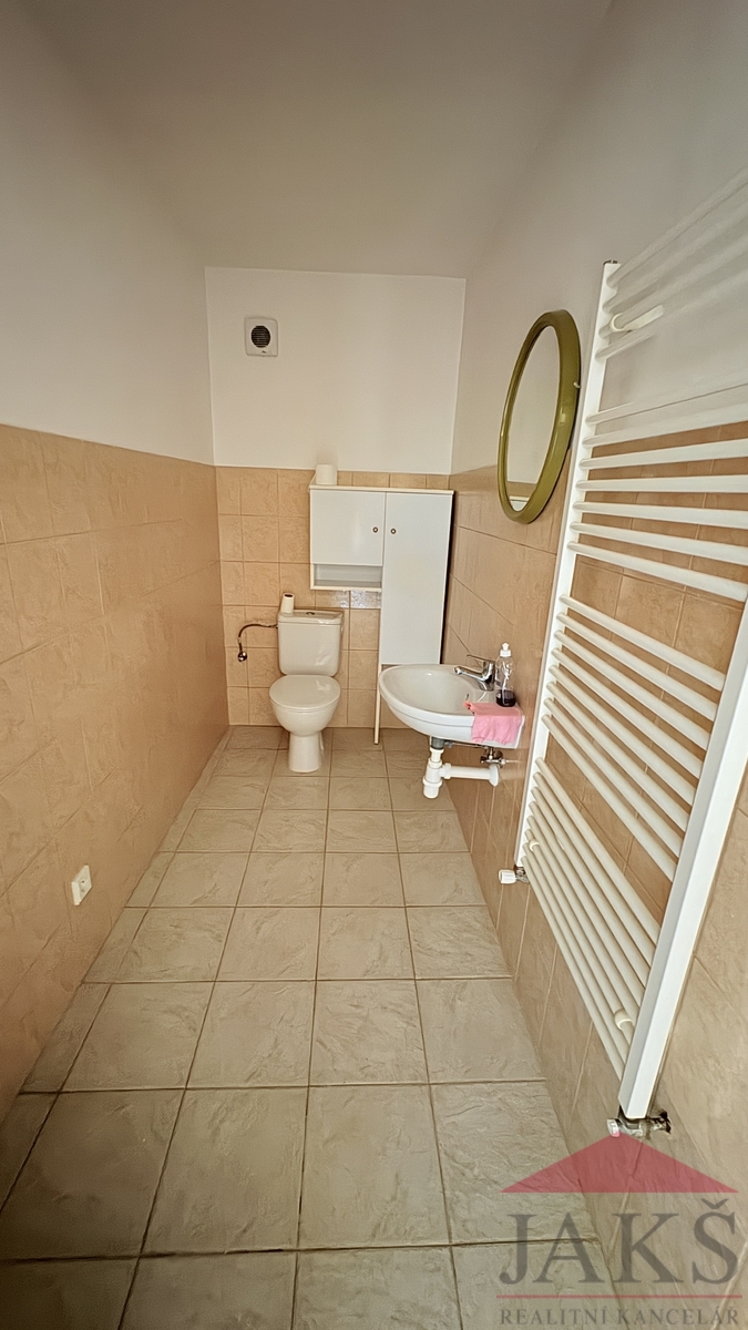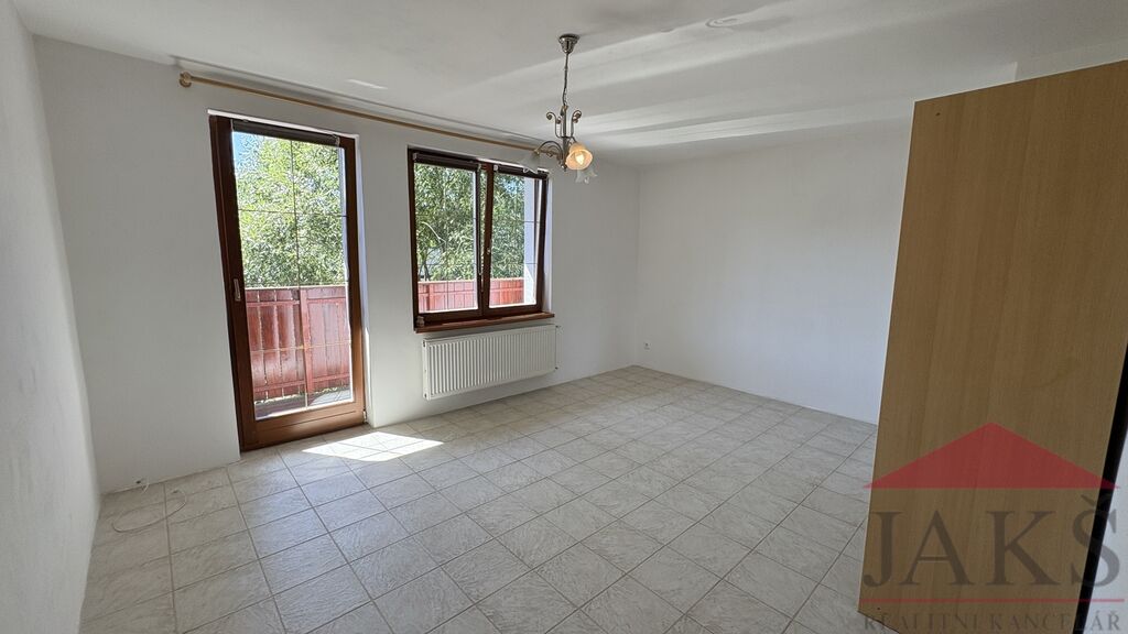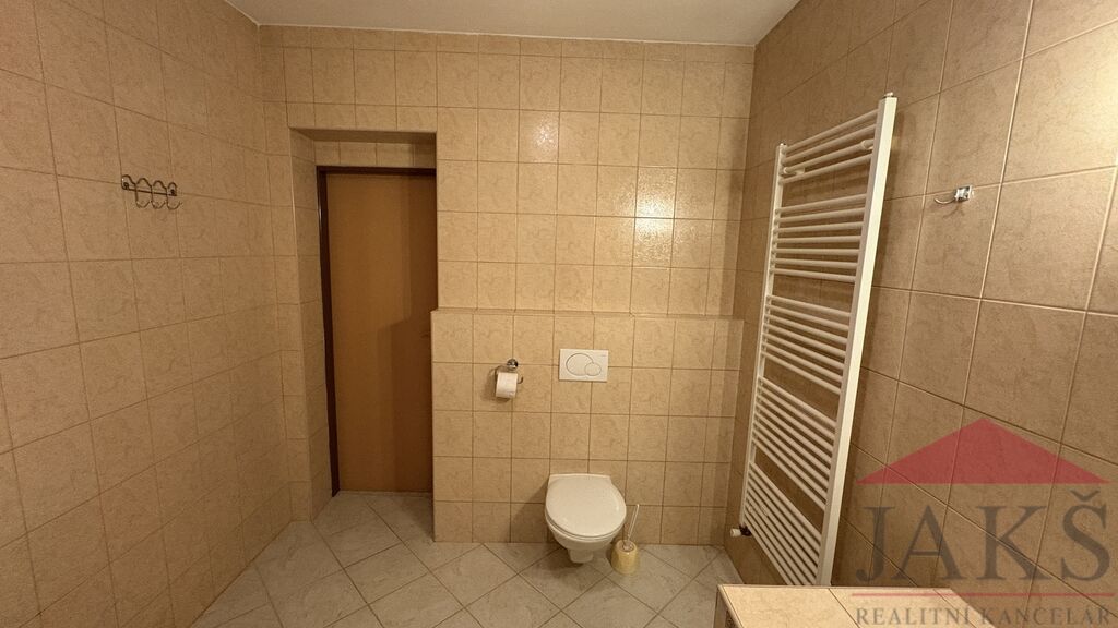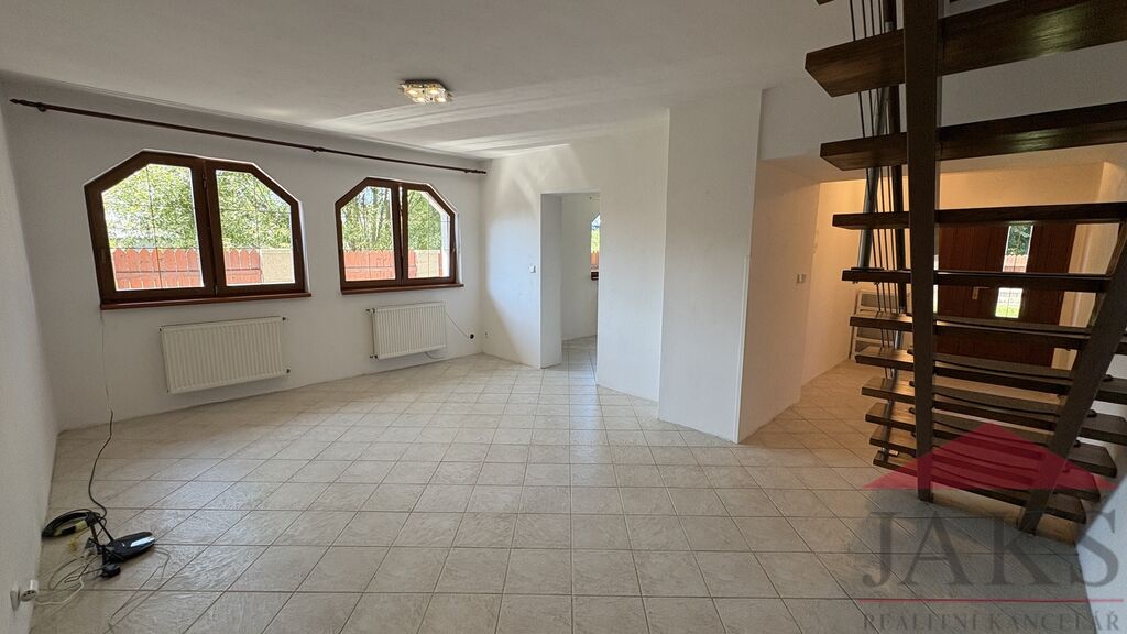 Popis: 1.NP (61,4 m2): vstupní chodba, dílna, kotelna (el. boiler a technologie k TČ), prostorný obývací pokoj se schodištěm do 2.NP, kuchyň (kuch. linka s HV troubou se sklo-ker. deskou) se vstupem na zahradu, koupelna s podlahovým topením (rohová vana, umyv. se zrcadlem, WC, topný žebřík); 2.NP (38,2 m2): chodba se schodištěm do podkroví a vstupem na velkou terasu, koupelna (umyv. se zrcadlem, topný žebřík, WC), ložnice s balkonem, ložnice; podkroví: 2x půdní prostor (bez světlé výšky, avšak jako dětský pokoj pro malé děti ideální).