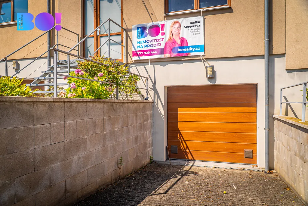 V domě jsou nezvykle velké a dobře rozmístěné úložné prostory. Vjezd do prostorné dvougaráže zajišťují rolovací vrata – i po zaparkování dvou aut zde bez potíží umístíte další motocykl nebo kolo. Dům je kompletně napojen na sítě, vytápění a ohřev vody zajišťuje úsporný plynový kotel.