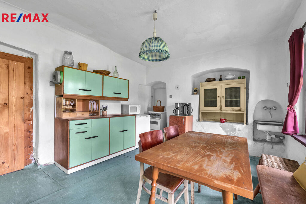 Současná dispozice obytné budovy je v 1. podlaží rozdělena na prosvětlený obývací pokoj s kachlovými kamny, kuchyň, 2 samostatné pokoje, zrekonstruovanou koupelnu a navazující hospodářskou část s konírnou, dílnou a dalším volným prostorem pro možné rozšíření obytné plochy. V druhém podlaží, do kterého se dostanete po původním dřevěném schodišti, se nachází 3. samostatný pokoj a rozsáhlé půdní prostory vhodné k realizaci vestavby. Třetí podlaží, respektive podkroví, je poté opět tvořeno velkým otevřeným půdním prostorem. Za zmínku rozhodně stojí rovněž stylový sklep s klenutým stropem. Dispoziční uspořádání jednotlivých místností je znázorněno na přiloženém půdorysu.