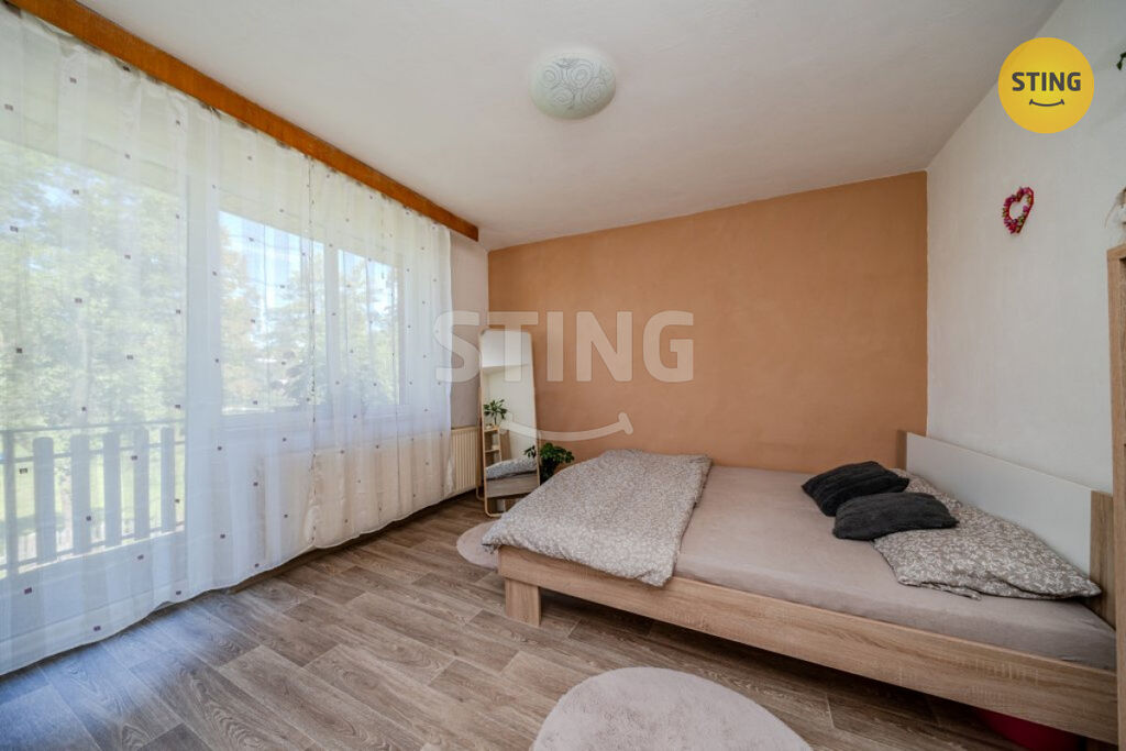 Nabízíme exkluzivně zděný RD po částečné rekonstrukci v malebné obci pod Oderskými vrchy, ve Vlkovicích u Fulneku. Tento zděný dům je koncipován jako samostatná část dvojdomku s vlastním vchodem, vlastním číslem popisným a vlastní samostatnou zahradou. V 1.NP se nachází vstupní veranda s chodbou a schodištěm do patra, komora, kotelna, dvě samostatné garáže a zastřešená terasa do dvora. Ve 2.NP je nad schodištěm menší hala s úložným prostorem, chodba, koupelna, WC, 3 ložnice a obývací pokoj propojen s kuchyňským koutem. Ze dvou pokojů lze vystoupit na prostorný balkón. Dům prošel před léty postupnou rekonstrukcí kdy byla vyměněná okna za plastová, nové vnitřní dveře ve 2.NP, 5 let stará kuchyňská linka, kotel na tuhá paliva je vyměněn za tepelné čerpadlo voda - vzduch zn. Wiessmann které zajišťuje vedle vytápění i ohřev teplé vody. El. je v původním stavu, rozvody vody a odpady jsou v plastu. Podlahy železobetonové konstrukce s dřevěnou krytinou, s linem, tkanou textilií a keramickou dlažbou. Pultová střecha domu je oplechovaná a pravidelně ošetřena nátěrem, dům je částečně opatřen zateplením a brizolitová omítka má nový nátěr. Na zahradě stojí skleník, k domu je napojena dřevěná zastřešená pergola pro zpříjemnění odpočinku. Voda je do domu napojena z dálkového vodovodu, voda k WC a zalévání zahrady je zajištěna ze studny na vlastním pozemku. Odpady jsou svedeny do vlastní čističky s odvodem upravené vody do místní vodoteče. PENB - energetický štítek domu se v současné době zpracovává, proto systém uvádí nejhorší třídu "G". Pro bližší informace volejte makléři. Do konce října 2025 nabízíme prostřednictvím našeho partnera úrokové sazby od 4,29 % p.a. Více informací Vám sdělí náš specialista na prohlídce.
