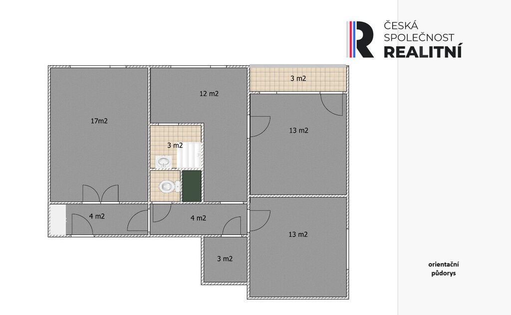 Tři neprůchozí pokoje s výhledem do zeleně. Lodžie ideální pro ranní kávu či relaxaci.