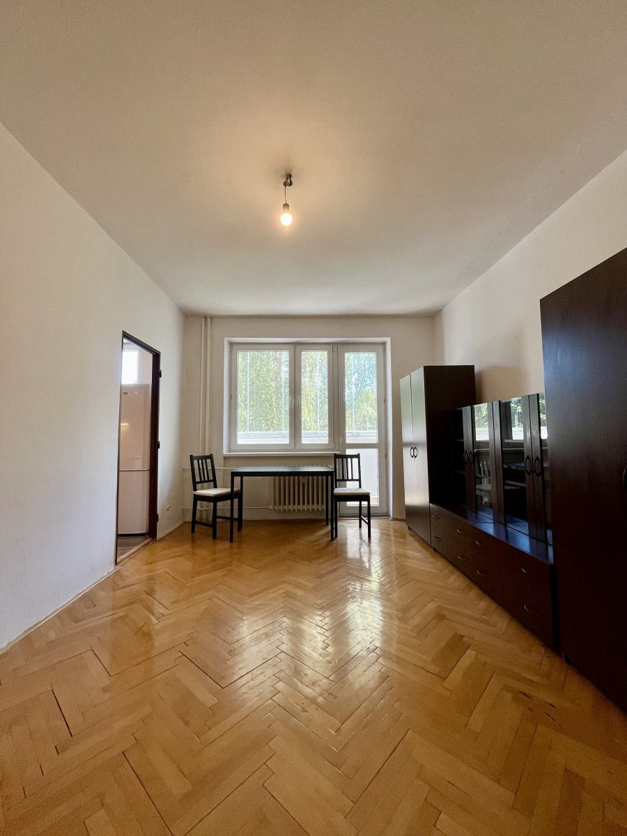 Byt je starší, ale plně funkční a připravený k okamžnému nastěhování. Součástí je zasklený balkon, přístupný z průchozího pokoje, a sklepní kóje.