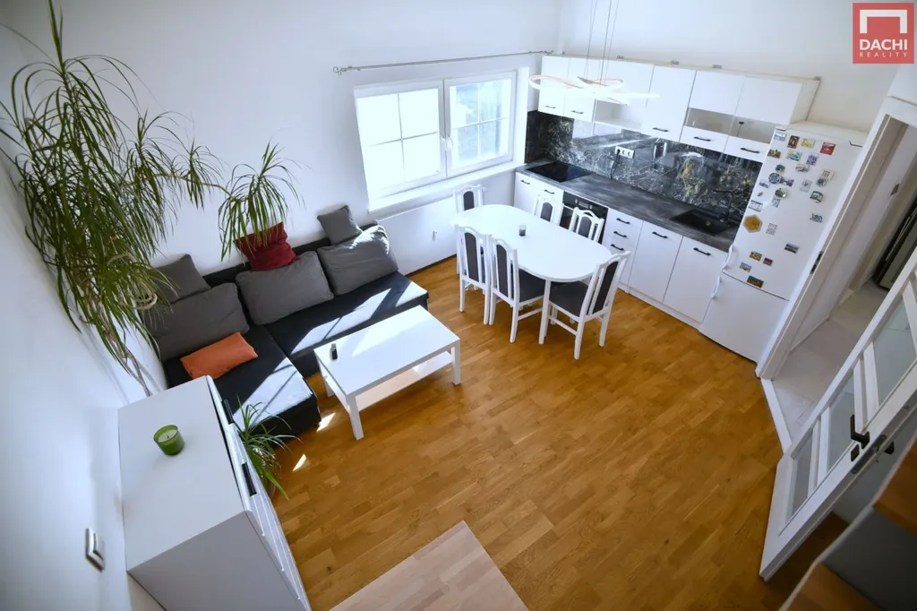 Díky podkrovnímu umístění je zaručeno dokonalé soukromí, příjemná atmosféra, krásný výhled a dostatek přirozeného světla v bytě.