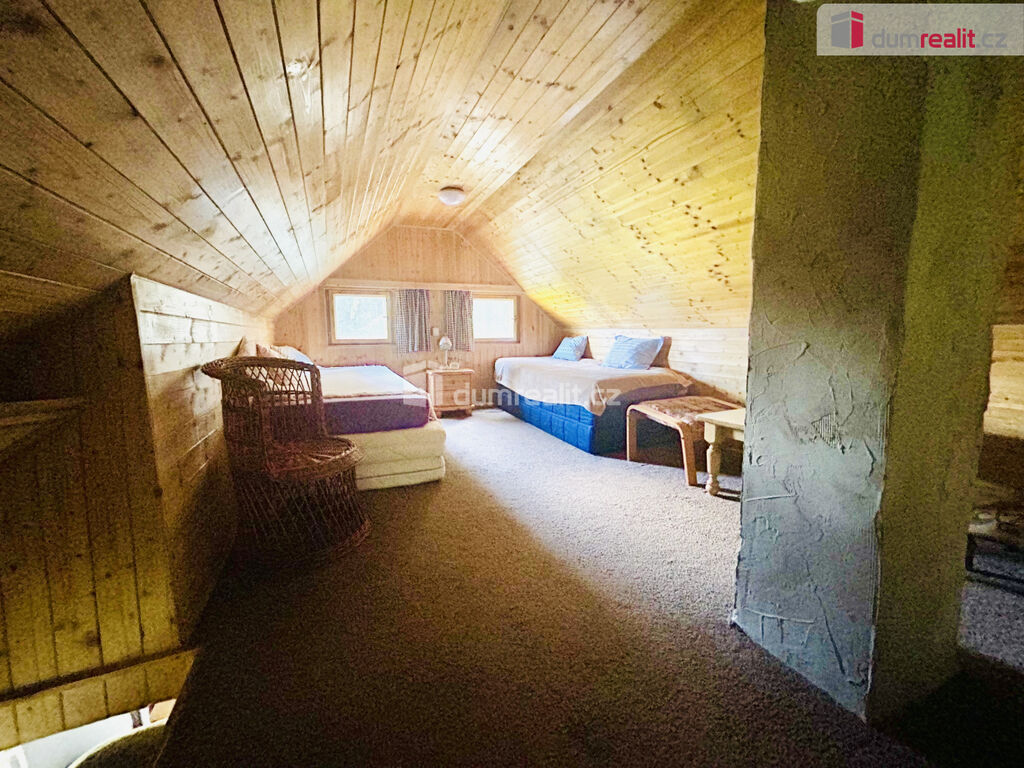 Dumrealit.cz Vám zprostředkuje exkluzivní prodej chaty v malé chatové osadě nedaleko rybníka Svěcený, obec Předbořice (Černíny). Jedná se o dřevostavbu, která byla znovu vystavěna na místě původní staré chaty. Na střeše plechová krytina, uvnitř ve spodním patře sádrokarton. V přízemí je předsíňka, obývací pokoj s kuchyní, v patře prostorná místnost využívaná jako ložnice. Vytápění pomocí kamen na tuhá paliva, je zavedena elektřina a chata má vlastní studnu - voda zavedená do chaty. "Koupelna" řešena přístavkem zvenku chaty (sprcha), WC také v přístavku - chemické + latrína v lese. Chata je postavena na pozemku, jehož vlastníkem jsou Lesy ČR, s.p. - řešeno nájemní smlouvou. Chata stojí na okraji lesa, na dohled rybník, kde se rybaří. Příjezd k chatě po zpevněné obecní komunikaci, v pohodě projede osobní auto. Jedná se o velmi klidnou lokalitu, přesto bezvadně dostupnou - Kutná Hora cca 16 cm, Zruč nad Sázavou 18 km. Ev. číslo: 652264.