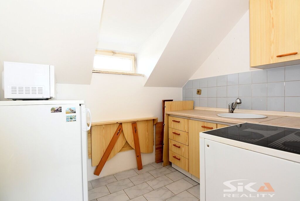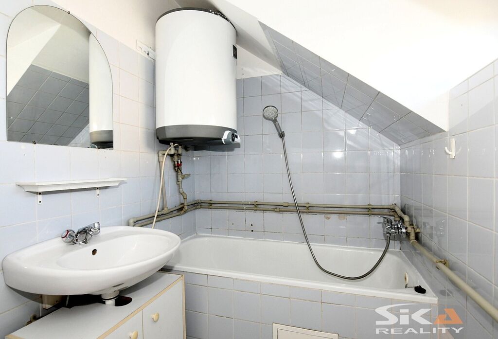 Nabízíme Vám exkluzivní prodej podkrovního bytu o dispozici 2+kk v podílovém spoluvlastnictví, který se nachází ve východní části města Louny – lokalita sídliště „Pod Kauflandem. Byt s podlahovou plochou cca 35 m2 a orientací oken na severní a jižní stranu je situovaný v cihlovém objektu po částečné revitalizaci, byl vybudován v roce 1995 a jedná se o původní stav z doby výstavby bez jakékoliv rekonstrukce/modernizace. Dispoziční řešení bytu - předsíň, ložnice, obývací pokoj, kuchyňský kout, koupelna s vanou společná s toaletou. Vytápění zajišťují lokální elektrická topidla, ohřev vody bojler. Měsíční náklady na bydlení činí 2.300 Kč + záloha na elektrickou energii. Příslušenství bytu tvoří sklepní koje v suterénu domu. Veškerá občanská vybavenost v dosahu. Centrum města 12 minut chůze. Volný k užívání ihned. Vzhledem ke skutečnosti, že nebyl předložen Průkaz energetické náročnosti budovy, uvádíme třidu G. Další informace Vám rádi poskytneme při osobní prohlídce nebo v RK.