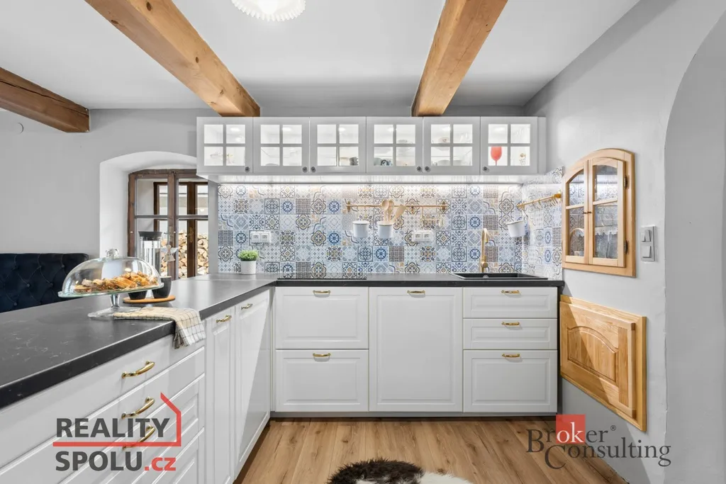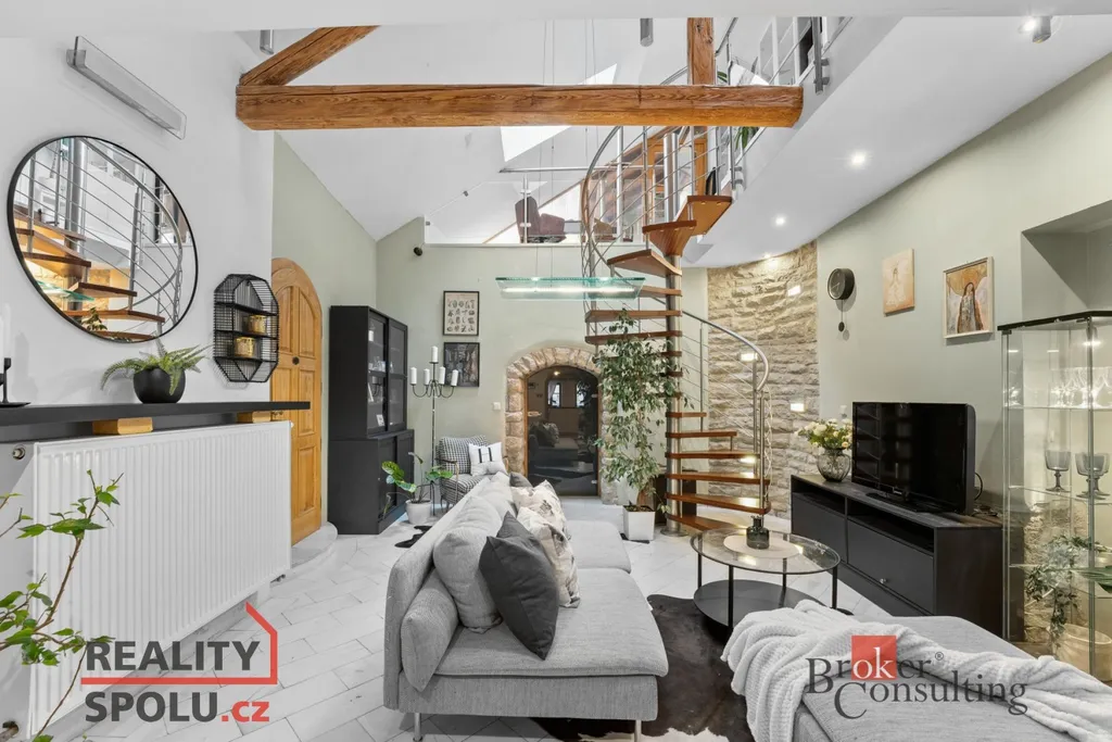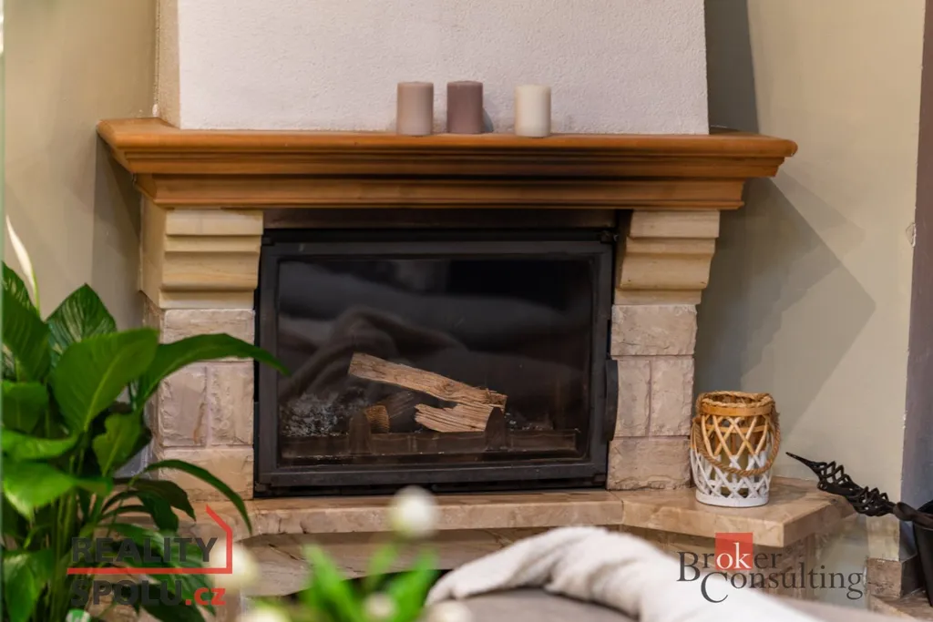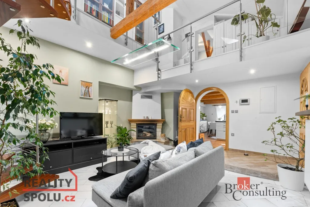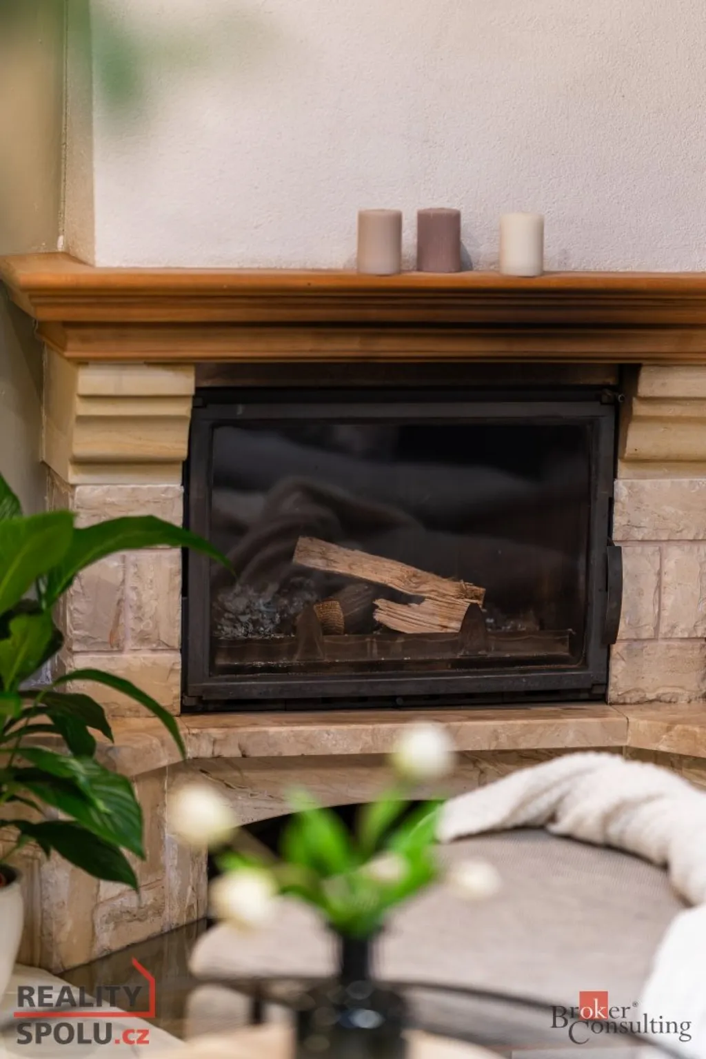 Srdcem domu je velkorysý obývací pokoj s vysokým stropem, který působí vzdušně a elegantně. Krb dodává prostoru nádech domova a vytváří ideální místo pro chvíle pohody s rodinou nebo přáteli. Na obývací část plynule navazuje moderní kuchyň, kde se potkává vůně čerstvé kávy s prvním ranním světlem a kde se rodí společné okamžiky plné smíchu a klidu.