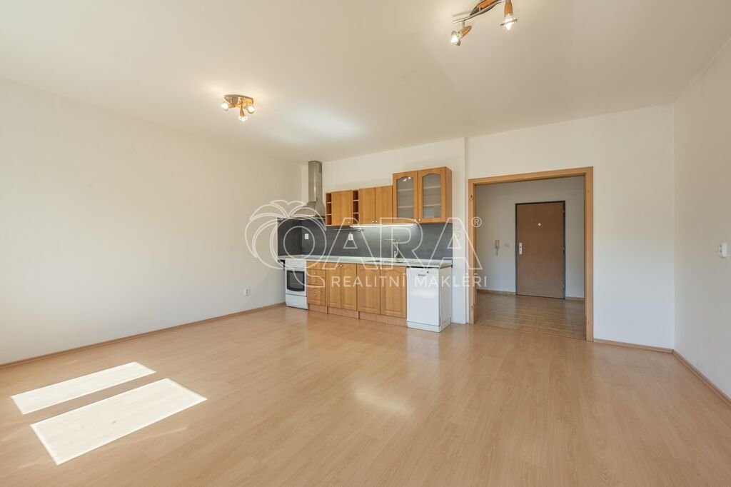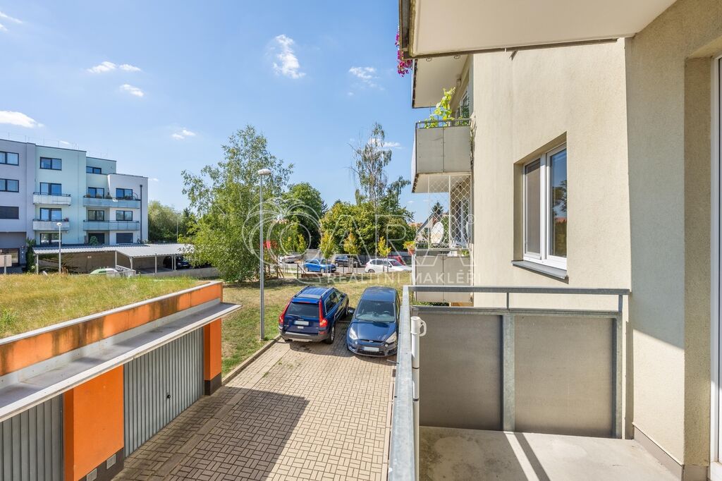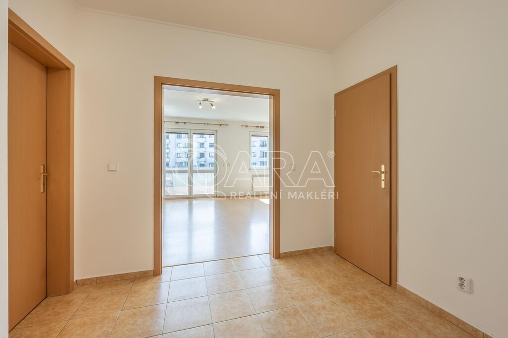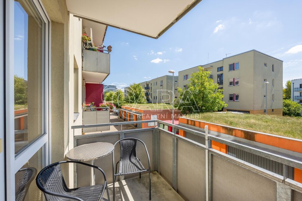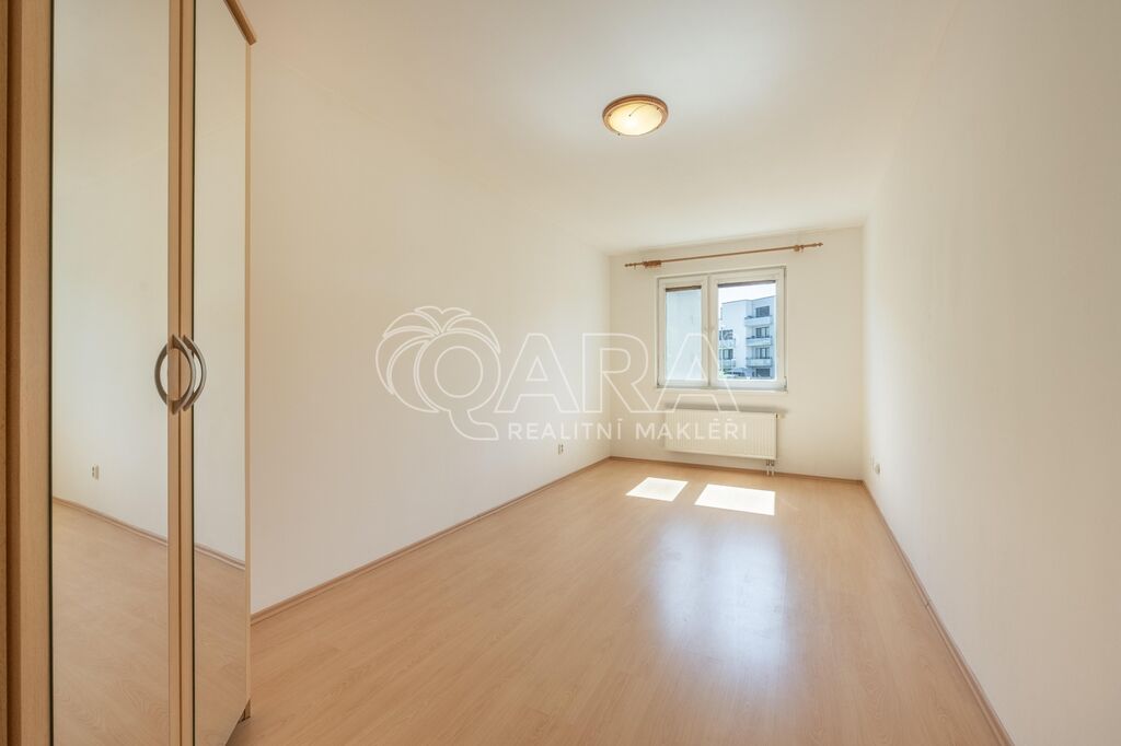 Byt o celkové výměře 56,8 m² (vnitřní plocha – 53,3 m², lodžie – 3,5 m²) je vyřešen velmi prakticky a tvoří jej: obývací pokoj s kuchyňským koutem, ložnice, vstupní chodba, koupelna s vanou a samostatné WC. Z obývacího pokoje je možný vstup na lodžii, která je orientována na jih. V obývacím pokoji a v ložnici jsou plovoucí podlahy, ve zbylé částí bytu je dlažba. Byt se pronajímá zařízený kuchyňskou linkou se sporákem, digestoří a myčkou. Vytápění zajišťuje centrální plynová kotelna v domě. Dům je vybaven výtahem. K bytu je dále možnost pronajmout si za 2.000,- Kč/měsíc dvougaráž se sklepem, obojí umístěno v přízemí domu.