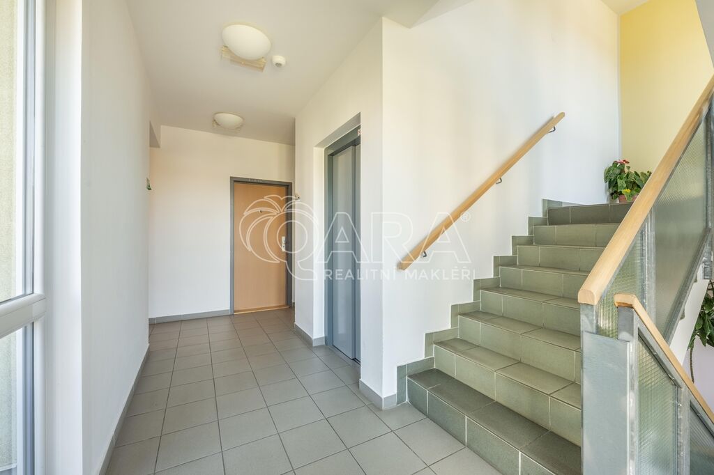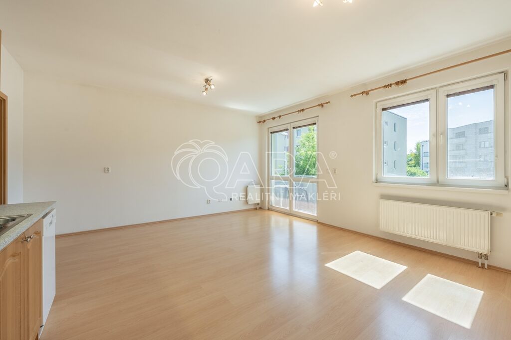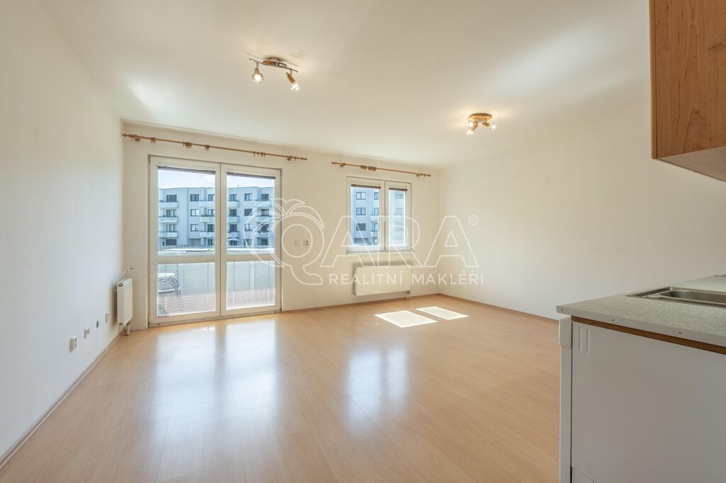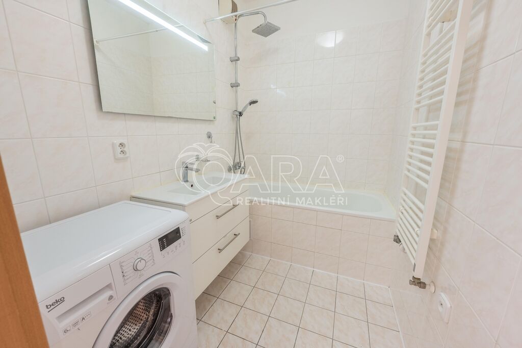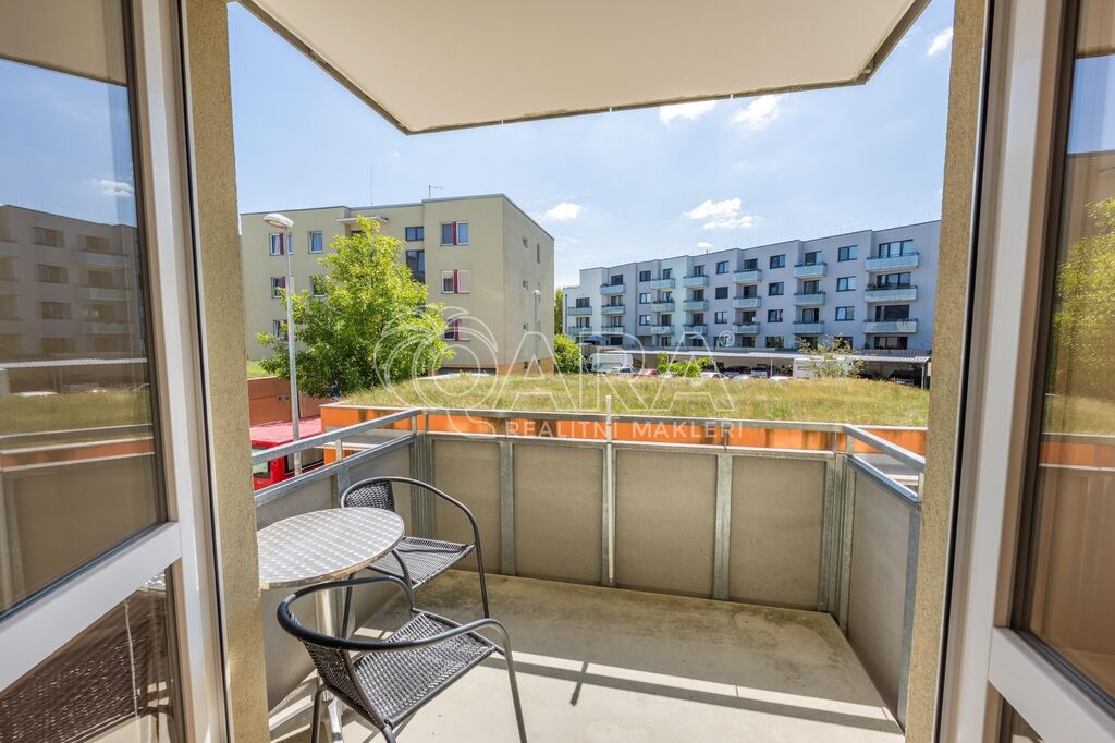 Byt o celkové výměře 56,8 m² (vnitřní plocha – 53,3 m², lodžie – 3,5 m²) je vyřešen velmi prakticky a tvoří jej: obývací pokoj s kuchyňským koutem, ložnice, vstupní chodba, koupelna s vanou a samostatné WC. Z obývacího pokoje je možný vstup na lodžii, která je orientována na jih. V obývacím pokoji a v ložnici jsou plovoucí podlahy, ve zbylé částí bytu je dlažba. Byt se pronajímá zařízený kuchyňskou linkou se sporákem, digestoří a myčkou. Vytápění zajišťuje centrální plynová kotelna v domě. Dům je vybaven výtahem. K bytu je dále možnost pronajmout si za 2.000,- Kč/měsíc dvougaráž se sklepem, obojí umístěno v přízemí domu.