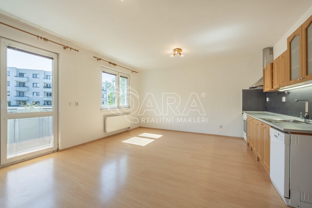 Nabídka pronájmu nezařízeného bytu o dispozici 2+kk s lodžií, ul. Františka Diviše, Praha 10 – Uhříněves. Byt je umístěn ve 2. nadzemním podlaží bytového domu z roku 2008.