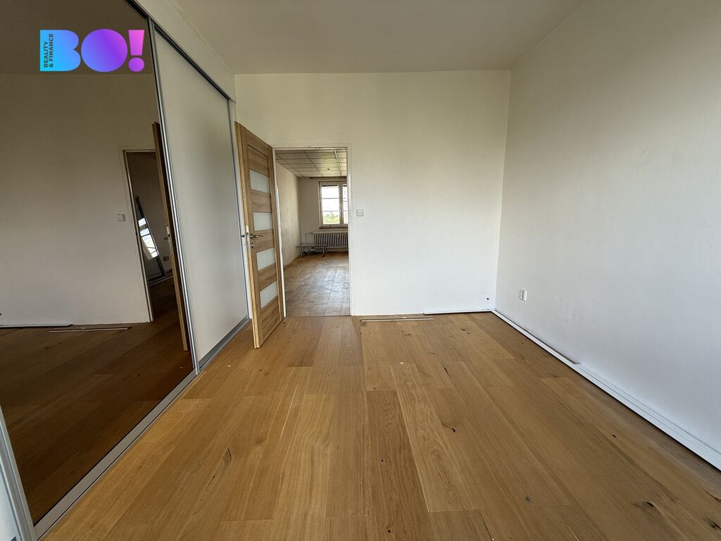 Byt má tři samostatné pokoje, kuchyň, koupelnu, WC a prostornou chodbu.