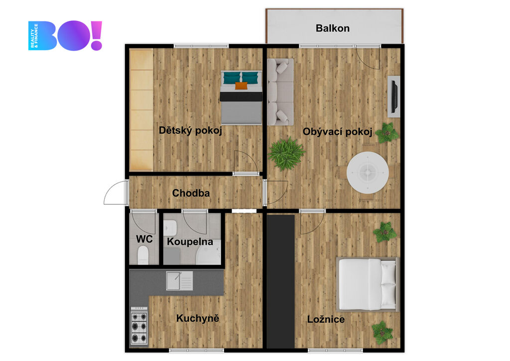 Dispozice 3+1 – dostatek místa pro rodinu i home office.