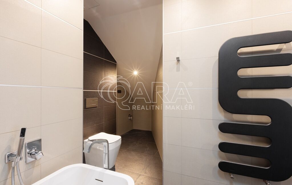 Zapomeňte na stereotypní podkrovní byty s nízkými stropy. Tohle je prostor, kde se můžete nadechnout. Na ploše 146 m² se rozkládá byt, který v sobě snoubí moderní design a praktičnost. Díky výtahu, který vás doveze až do vaší předsíně pomocí čipu, si užijete maximální komfort a soukromí. Pro hosty je k dispozici video telefon a schodiště, které můžete využít pro dodatečný úložný prostor.