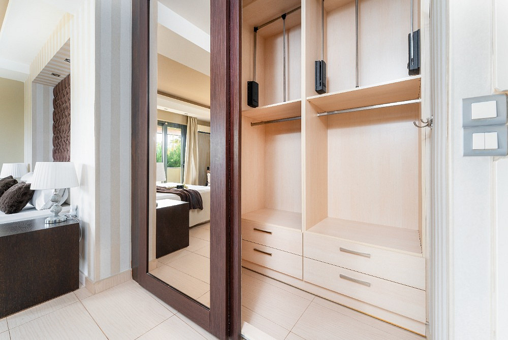 Interiér apartmánu je kompletně vybaven luxusním nábytkem a výjimečným designem, který zaručuje maximální pohodlí a eleganci. Celý komplex je obklopen dvou akrovým soukromým pozemkem, který připomíná parkovou zónu s udržovanou zahradou. K dispozici je také společný bazén o velikosti 50 m², bar s teplou kuchyní a bezproblémové bezplatné veřejné parkoviště přímo před budovou.