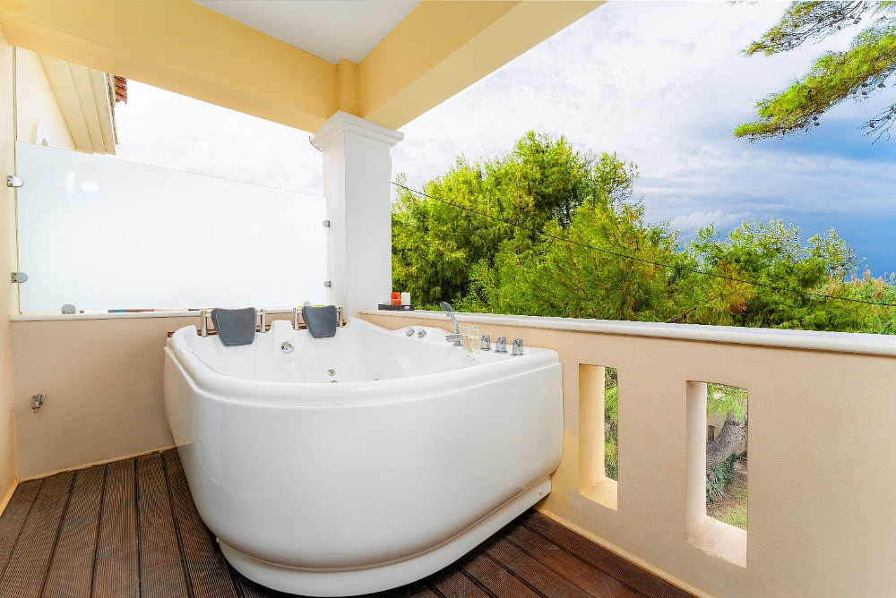 Je součastí apartmánové vily, která má celkem 5 apartmánu. Velkorysá rozloha velikosti 140 m², situovaný v exkluzivním rezidenčním komplexu ve městečku Tsilivi. Tento apartmán se nachází v prvním patře a skládá se ze tří ložnic, obývacího pokoje, jídelny, kuchyně a dvou koupelen. K dispozici je také terasa s úžasným výhledem na pláž a mořské útesy, je o rozloze 15 m² s jacuzzi, ideální pro relaxační chvíle. Samostatný vstup z venkovního schodiště přidává pocit soukromí.