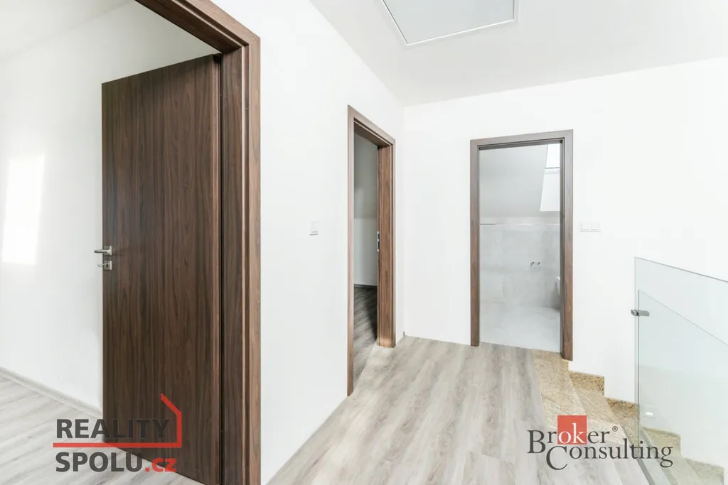 Nabízíme k prodeji moderní řadový rodinný dům o dispozici 4+kk, s obytnou plochou 120 m² a pozemkem o velikosti 387 m². Dům se nachází v závěrečné fázi výstavby – v interiéru právě probíhá instalace vnitřních dveří, exteriér čekají poslední terénní úpravy. Kolaudace je plánována na první polovinu příštího roku.