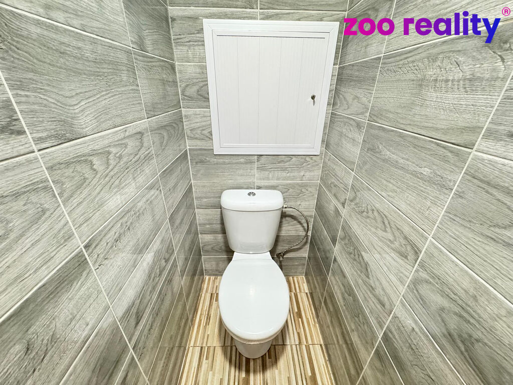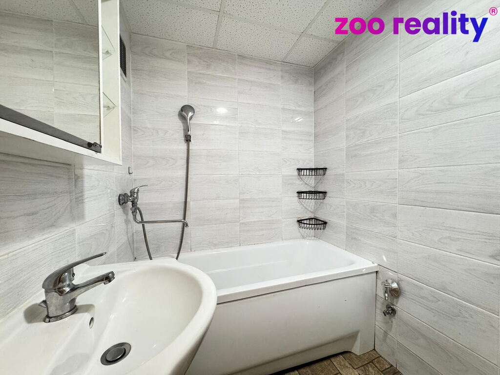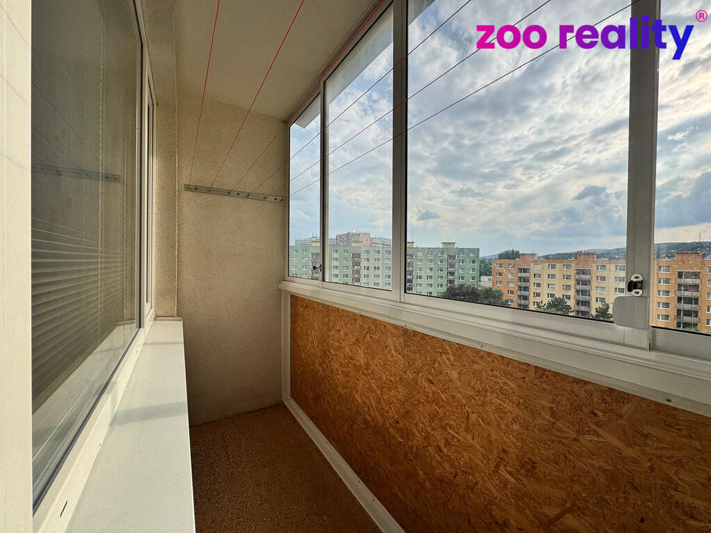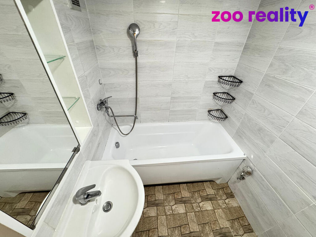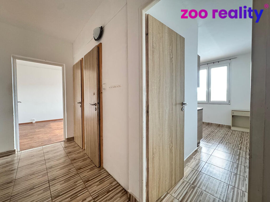 Nabízíme k pronájmu bytovou jednotku, o dispozici 2+1 s lodžií, v družstevním vlastnictví, kterou nejdeme v 9. patře zatepleného panelového domu s plastovými okny. Najdeme zde vstupní předsíň s dveřmi do obou pokojů (k jednomu z nichž náleží lodžie), do koupelny s umyvadlem, vanou a prostorem pro pračku a na samostatnou toaletu. Za bytovým jádrem je kuchyně s prostornou kuchyňskou linkou ve tvaru L a místem pro jídelní stůl.