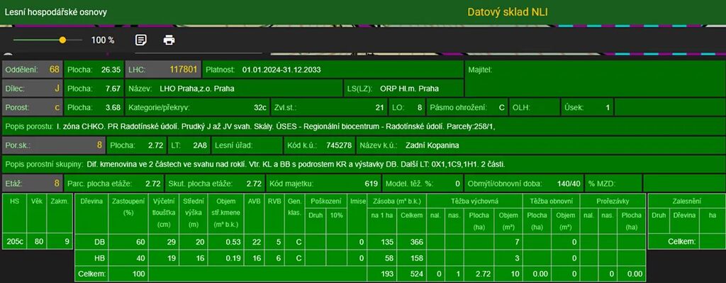Jedná se o p.č. 258/1 vedená jako lesní pozemek o celkové výměře 36 765 m2.