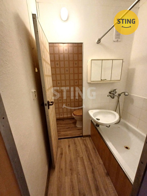 Byt je slunný a orientovaný mimo rušné komunikace. Dispozici tvoří pokoj o výměře 19 m², kuchyň s kuchyňskou linkou, pračkou a spíží a koupelna se sprchovým koutem, v předsíni velká šatní skříň. K bytu náleží sklep 1,8 m2.