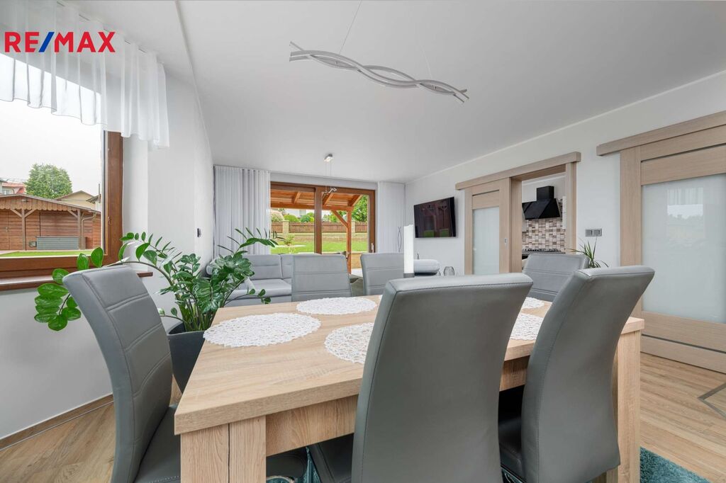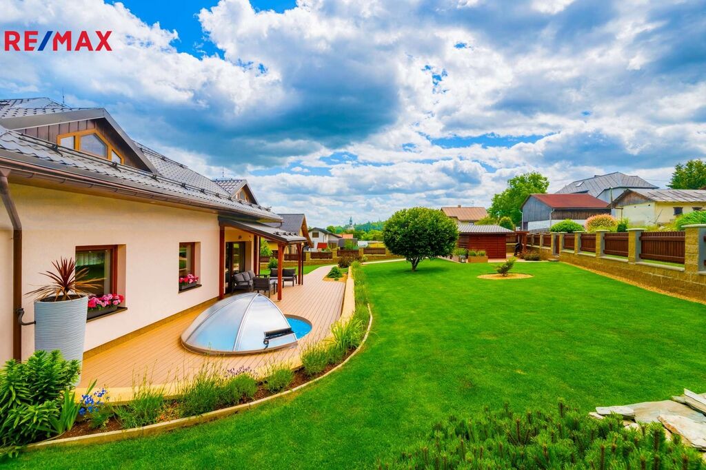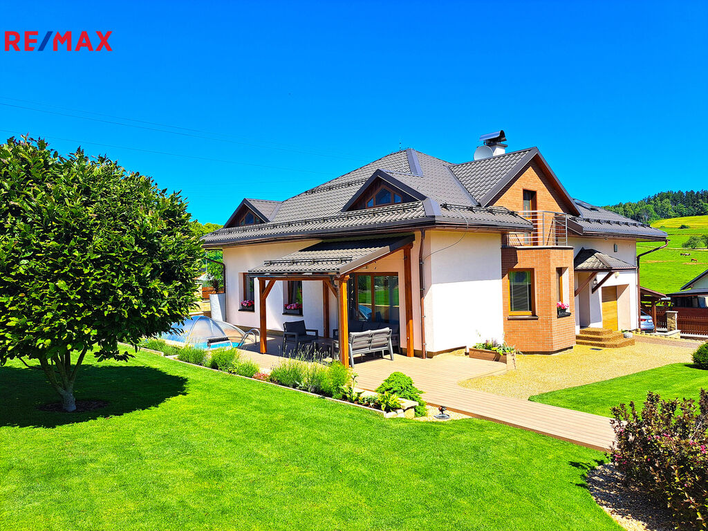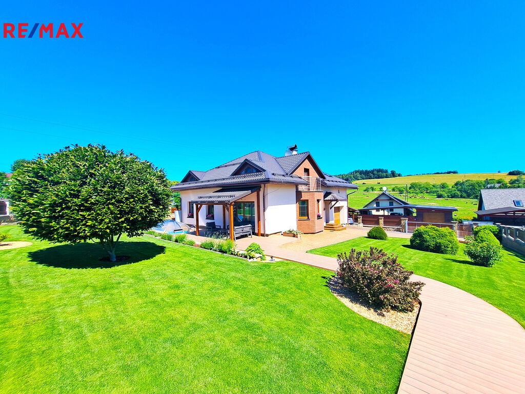 Představuji Vám do nejmenšího detailu promyšlený a špičkově udržovaný moderní dům na úpatí Krkonoš. Jedná se o prostorný, dvoupodlažní dům postavený ve vysokém standardu, který má užitnou plochu 232 m2 a patří k němu krásná udržovaná zahrada se zastřešenou terasou o výměře 1.183 m2. Dům se nachází v Držkově, jen kousek od centra města, a přitom v klidné rezidenční čtvrti, v těsné blízkosti přírody a běžeckých stop.