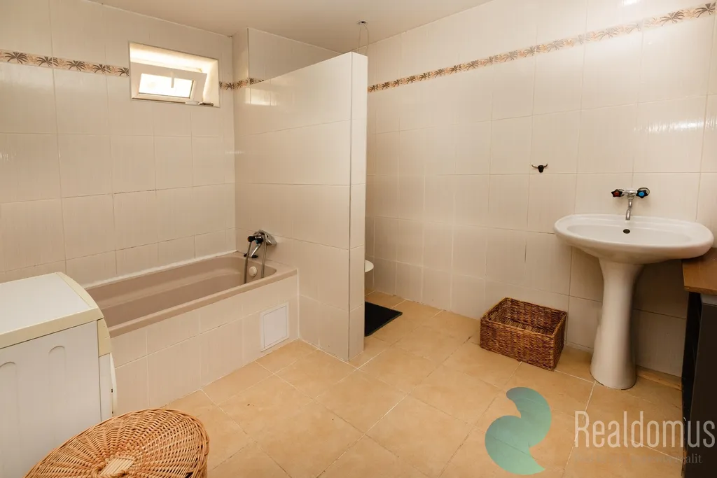V přízemí vás přivítá vstupní chodba, samostatná ložnice, světlá kuchyň spojená s obývacím pokojem a koupelna s vanou. Srdcem domu je však velká pergola táhnoucí se podél domu – ideální místo pro večerní posezení s rodinou či přáteli.