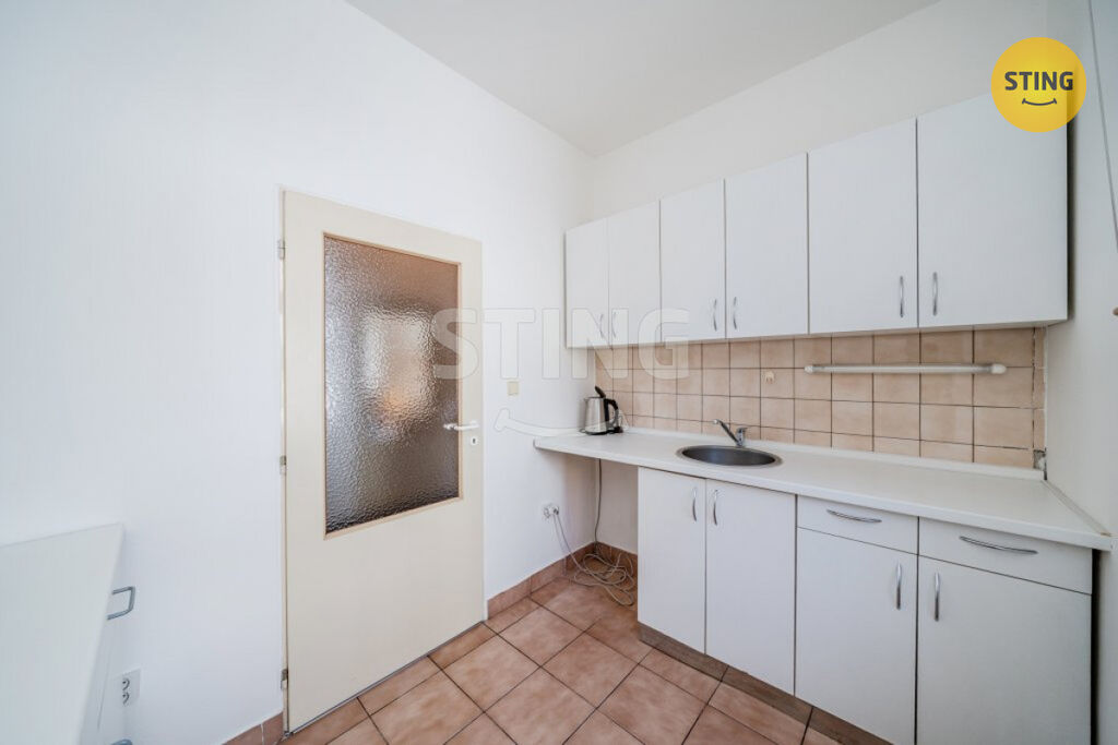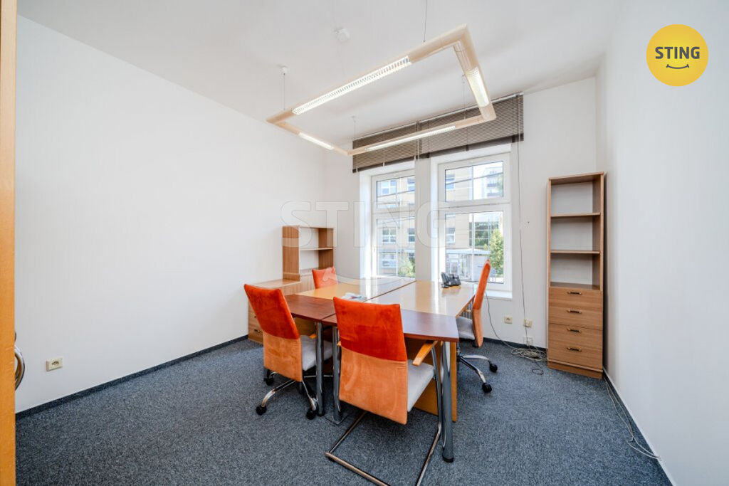 1. NP: tři samostatné kanceláře, prostorná zasedací místnost, dvě sociální zázemí a vybavená kuchyňka.