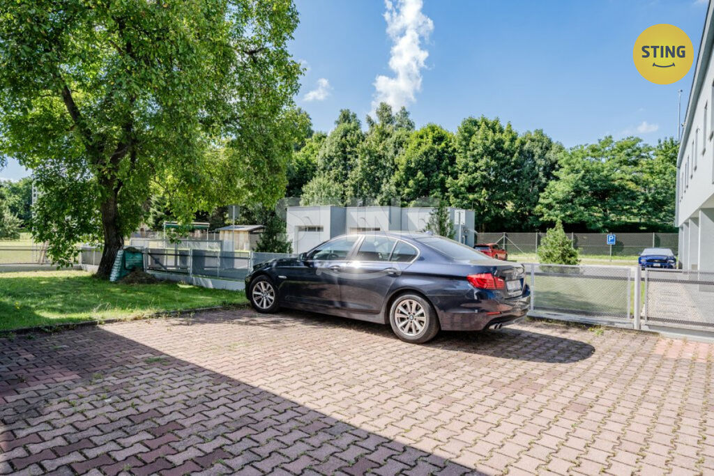 Garážová kapacita až pro tři automobily se nachází v samostatné budově přímo u vily. Dále jsou k dispozici dvě venkovní parkovací stání. Celý objekt je oplocen a poskytuje bezpečné zázemí pro zaměstnance i návštěvy.