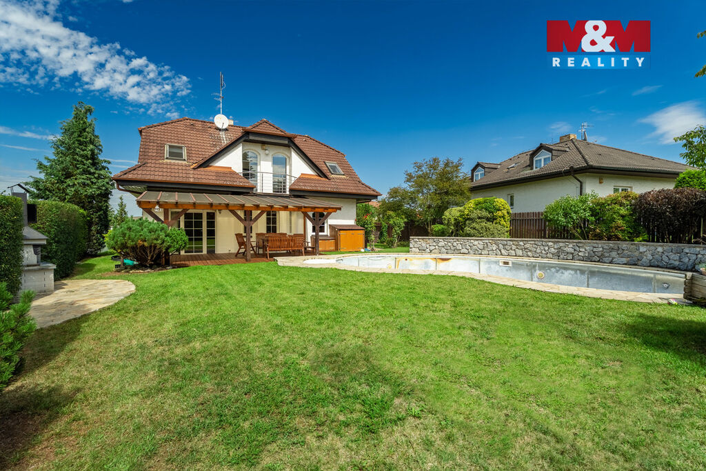 Prodej samostatného rodinného domu s velkorysou dispozicí 7+1 ve Velkých Přílepech, v klidné ulici s výbornou dostupností do Prahy (10–15 min autem, MHD na metro A – Bořislavka/Dejvická). Dům zaujme flexibilním uspořádáním a dvěma samostatnými vstupy – ideální pro vícegenerační bydlení, home office či podnikání (kosmetika, masáže, kancelář; možnost samostatné jednotky 2+kk s vlastním vstupem). Přízemí: obývací pokoj s krbem a vstupem na terasu, plně vybavená kuchyně se spíží/komorou, pracovna a pokoj, nová koupelna se sprchou a samostatné WC. Patro: 3 ložnice, další pokoj, koupelna s vanou a WC, šatna, 2 balkony. V roce 2025 proběhla částečná rekonstrukce (podlahy, interiérové dveře, koupelna a WC v přízemí). Zahrada se vzrostlou zelení zajišťuje soukromí; na pozemku pergola, nerezový bazén a zahradní dům. Parkování v dvojgaráži + další stání. V obci kompletní občanská vybavenost, okolí láká do přírody a na výlety. Rychlý dosah letiště, v okolí Tiché údolí, Únětice a Okoř.