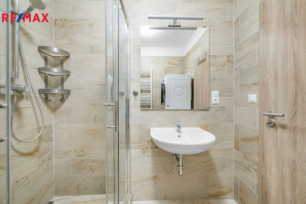 K dispozici jsou dvě koupelny – první se sprchovým koutem, toaletou a umyvadlem, druhá s vanou, toaletou a dvěma umyvadly. Díky tomu je bydlení komfortní i pro vícečlennou rodinu.