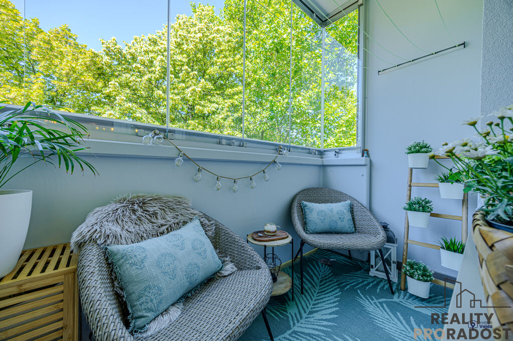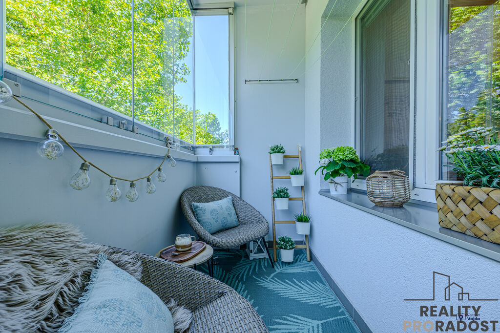 - nový prostorný a zasklený balkón s výhledem do zeleně