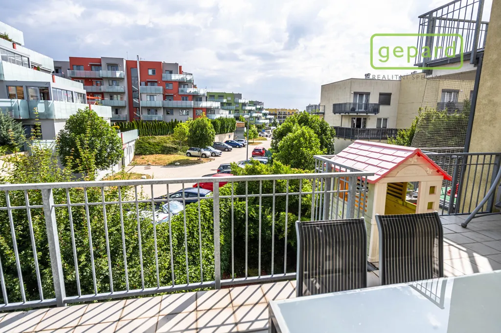 Ve výhradním zastoupení si vám Gepard reality dovoluje nabídnout ke koupi světlý byt 3+kk (80m2) s velkou terasou a balkónem, v oblíbené lokalitě Praha - Řeporyje, ulice Wiesenthalova. Byt se nachází ve 3. podlaží moderního domu zkolaudovaného v roce 2009. Dispozice bytu je promyšlená: prostorná vstupní chodba, z níž se vchází do obývacího pokoje s kuchyňským koutem (31 m2) a vstupem na velkou slunnou terasu (36 m2), ideální pro relaxaci, posezení, gril a dětské zázemí či menší zahrádku v květináčích. Dále se z chodby vstupuje do koupelny s vanou (3,8m2), na samostatné WC a do dvou samostatných neprůchozích pokojů. Ložnice 15,9m2 a dětský pokoj/pracovna 16,4m2. Z ložnice je přístup na balkon (9,6m2), který poskytuje další příjemný venkovní prostor pro ranní kávu či relax.