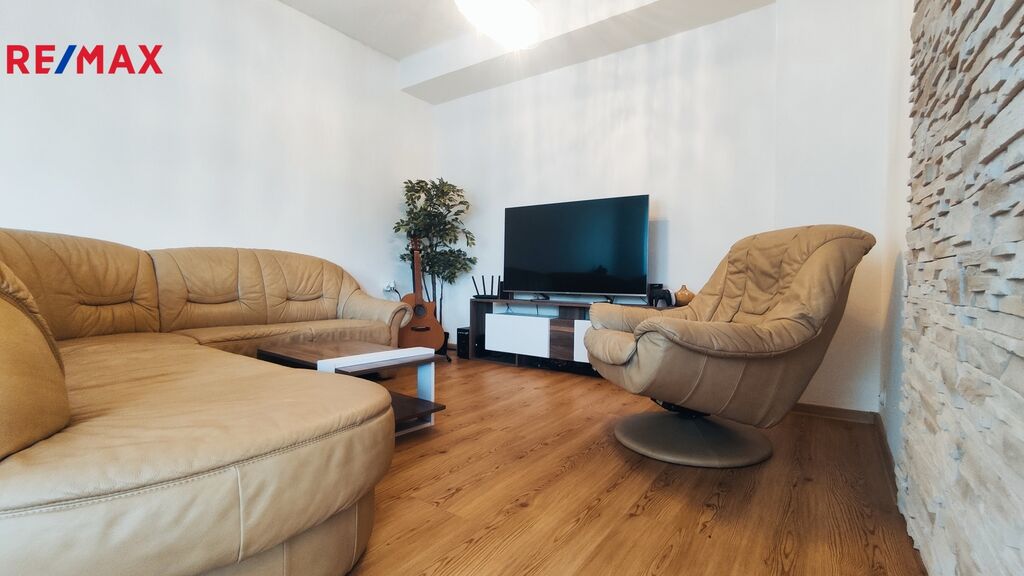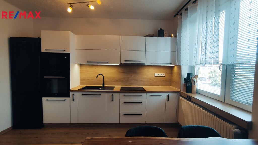 K bytu náleží tři zděné sklepy v 1.PP, možnost parkování u domu až pro dvě auta a lodžie. Interiér je vybaven novou kuchyňskou linkou se sklokeramickou varnou deskou a vestavěnými spotřebiči. Vytápění je zajišťováno novým plynovým kondenzačním kotlem a ohřev vody je zabezpečen novým bojlerem. V bytě je vinylová podlaha se zateplením a okna jsou plastová s vnitřními žaluziemi. Byt se nabízí kompletně vybavený k okamžitému nastěhování (Cena vybavení je součástí kupní ceny).
