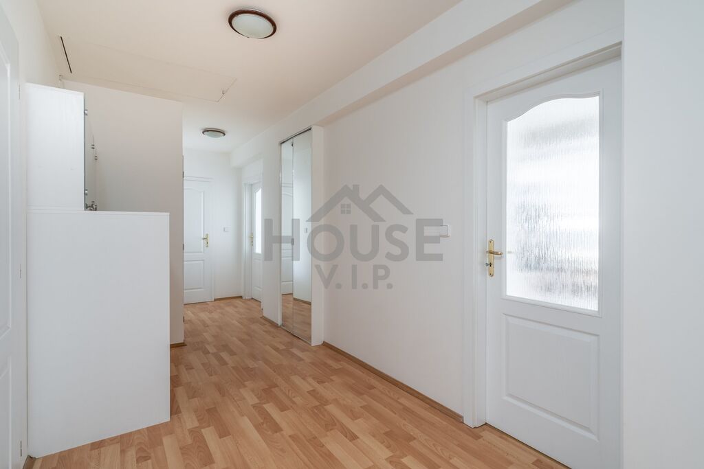 Byt je rozdělen na dvě samostatné jednotky – 4+1 a 1+KK – oddělené společnou předsíní (4,5 m²) s vestavěnými skříněmi.