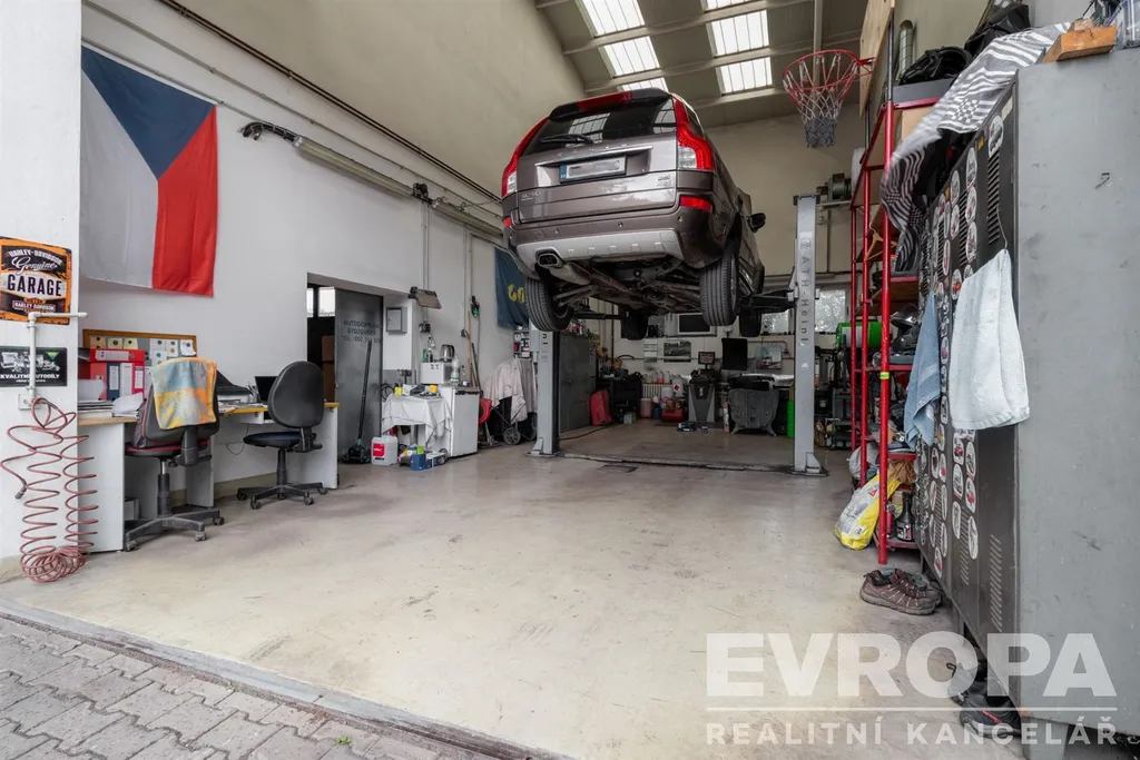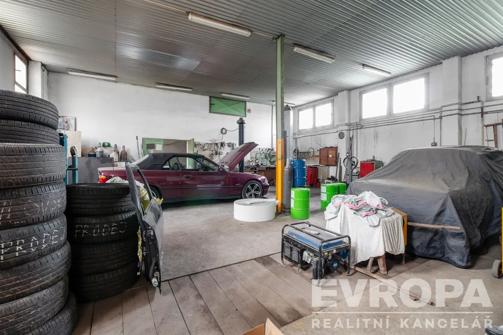 Dílny / servisní haly, přizpůsobené pro opravy a údržbu vozidel, s vjezdem i pro nákladní techniku.