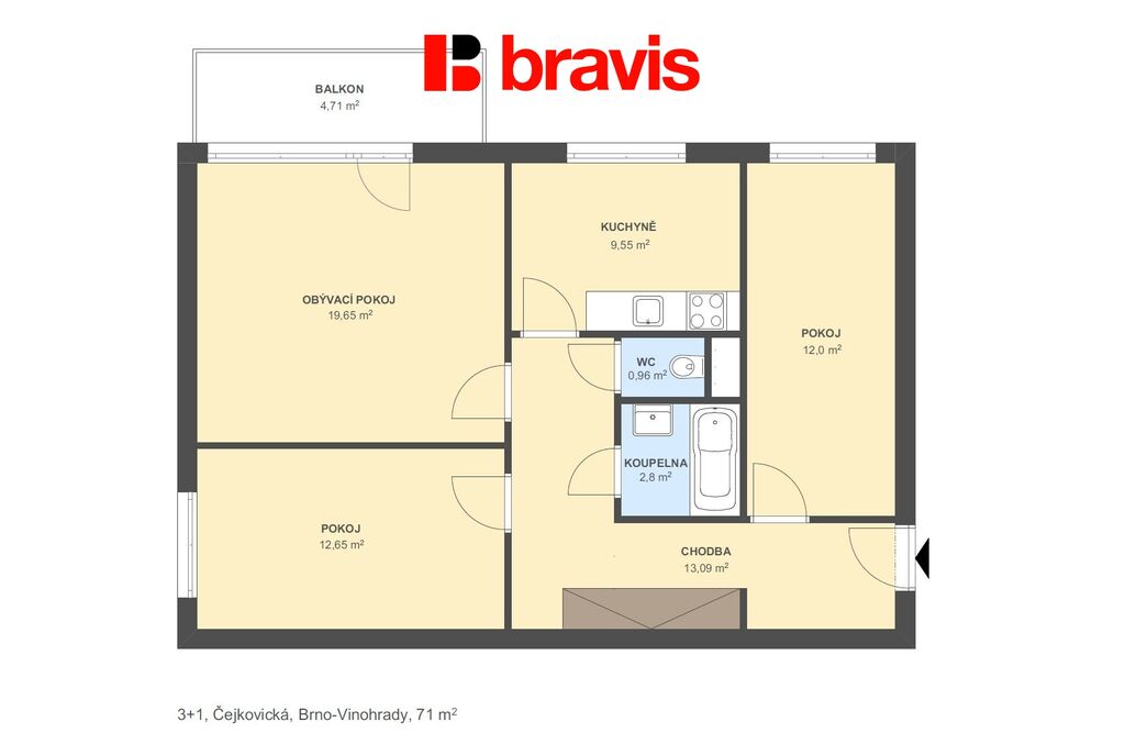 Nabízíme k prodeji bytovou jednotku o dispozici 3+1 s užitnou plochou 77 m² a zasklenou lodžií o velikosti 5 m².