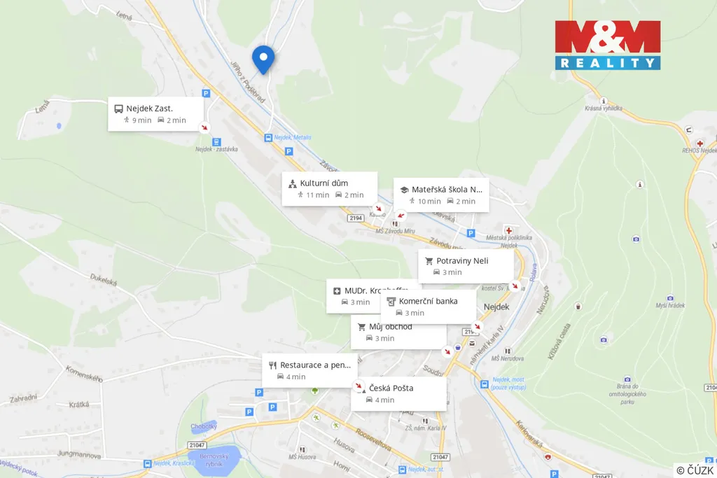 Nabízím k prodeji prostorný rodinný dům v klidné části obce Nejdek. Tato převážně cihlová nemovitost o ploše 138 m² prošla rozsáhlou rekonstrukcí včetně zateplení a je ideální pro rodiny hledající pohodlí a klid v samostatně stojícím domě poblíž krásné přírody. Dům disponuje dvěma nadzemními podlažími a jedním podzemním. Nad nimi najdeme prostornou půdu. Příjemnou atmosféru domova podtrhují krbová kamna umístěná v obývacím pokoji. Z domu plynule vystupuje velká terasa, která nabízí nádherný výhled jak do krajiny, tak na přilehlou zahradu o rozloze 1298 m², která nabízí dostatek prostoru pro zahradničení či odpočinek. V letních měsících pak potěší bazén. V okolí domu najdete také vodní pramen a blízký les. K domu náleží dále garáž a stodola a je kompletně podsklepený, což nabízí další možnosti využití. Jako jeden z mála je dům napojen na obecní vodovod i kanalizaci. Hledáte klidné bydlení v atraktivní lokalitě s veškerou občanskou vybaveností i přírodou na dosah. Neváhejte a ozvěte se.