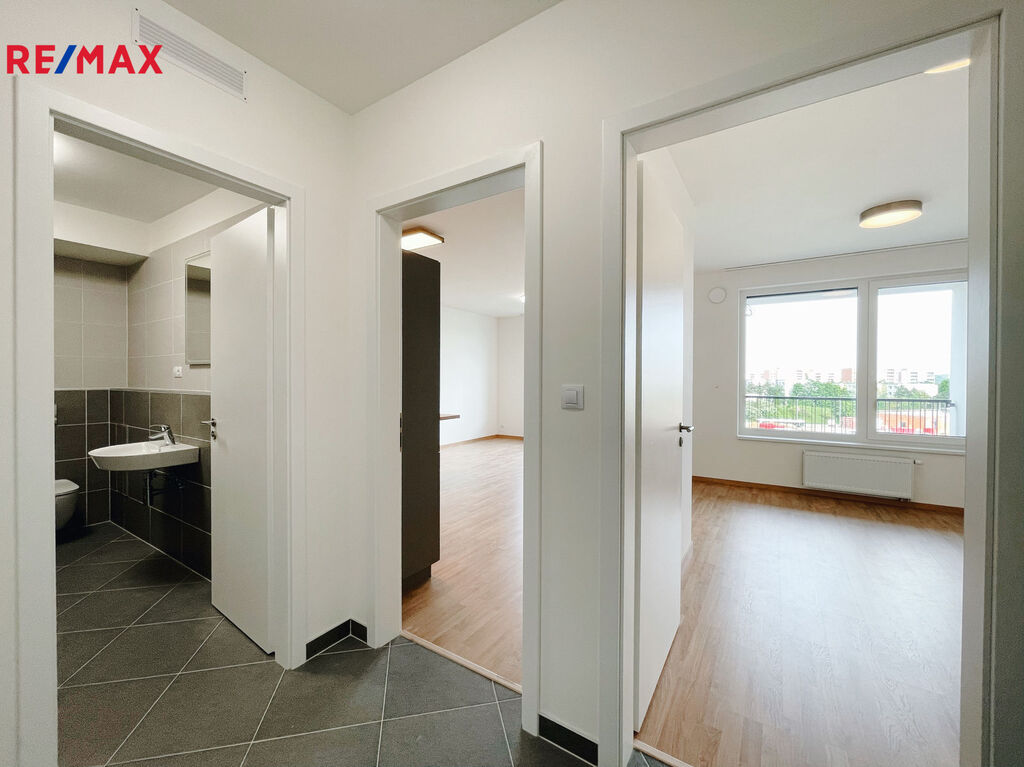 Dispozičně je byt rozdělen na ložnici, obývací pokoj s novým kuchyňským koutem, prostornou koupelnu s vanou a toaletou, malou místnost, kterou lze využít např. jako šatnu, nebo komoru/technickou místnost a lodžii. Nájemci je v bytě k dispozici moderně zařízená kuchyň s indukční deskou, digestoří, elektrickou troubou a myčkou nádobí. Byt je nově vybaven vnitřní i venkovní klimatizační jednotkou a TV komodou.
