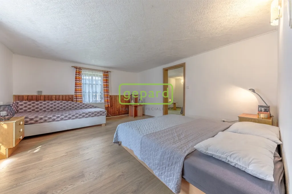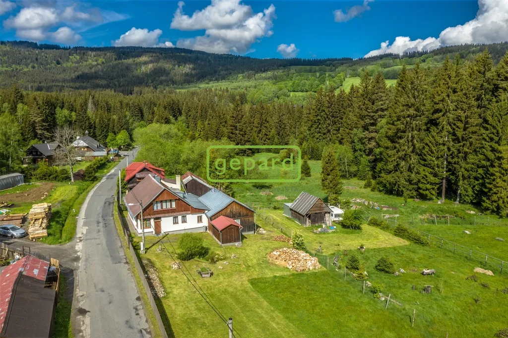 V srdci národního parku Šumava nabízíme k prodeji udržovanou velkou chalupu o dispozici 2x 3+kk v malebné části obce Srní - Mechov u Kašperských hor. Dům má potenciál jako rodinná chalupa nebo jako investiční příležitost pro pronájem. Jedná se o rodinný dům s 6 pokoji, ve spodním patře je 2+kk (2 ložnice, kuchyň s jídelnou, koupelna s wc), v horním patře také 2 samostatné pokoje, koupelna s wc, místnost pro kuchyňku s jídelnou. Zastavěná plocha domu je 126 m² a plocha ostatní parcely je 765 m², dům je částečně podsklepen.