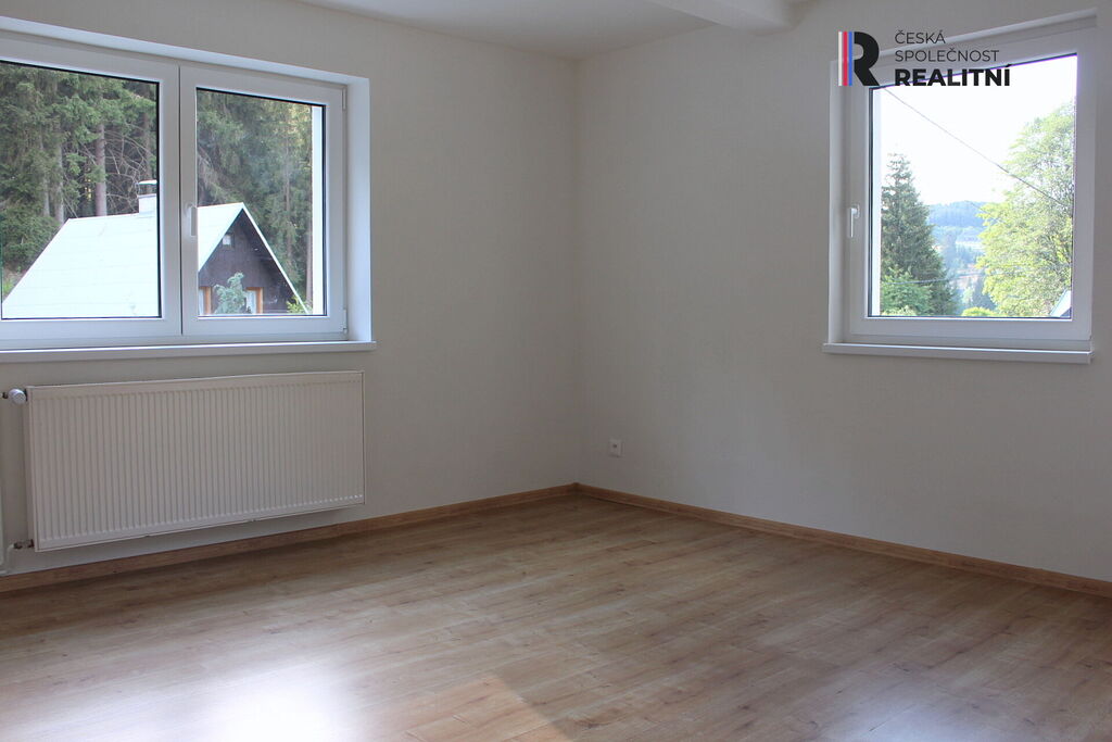 Představuji Vám k prodeji patrový dům po celkové rekonstrukci z roku 2023 s vlastním pozemkem o výměře 311 m2 se zastavěnou plochou 85 m2 a obytnou plochou 165 m2. Ostatní okolní pozemky u domu cca 650 m2 jsou pronajaty od státního pozemkového fondu za 2.500 Kč/ročně s možností odkupu nebo převodu pronájmu. Tato nemovitost se nachází v horské vesničce Potůčky v okrese Karlovy Vary v Krušných horách.